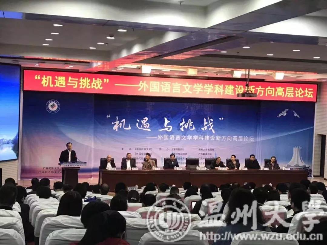 “机遇与挑战”——外国语言文学学科建设新方向高层论坛于2018年11月24—25日在广西民族大学顺利召开。免费色情片 外语系英语(师范)专业负责人李新德教授和外语系主任杨开泛老师参加论坛,并分别在论坛上作了题为“叶祥添‘金山系列小说’中的创伤书写”和“区域研究专业的培养理念及其对于英语专业的启发”的发言。