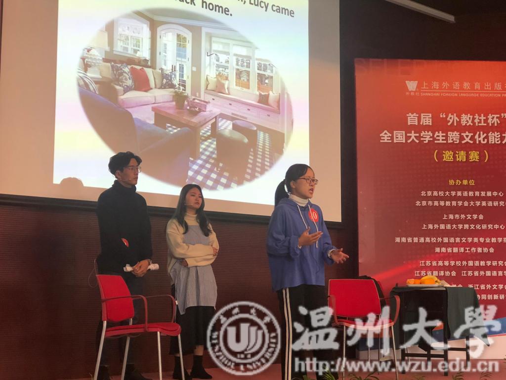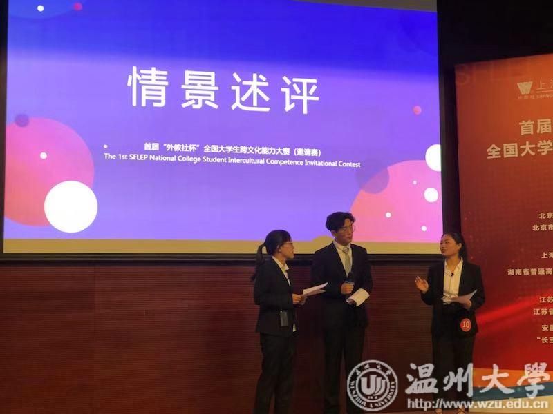 2018年12月16日,由北京、上海、江苏、安徽、湖南、浙江六省市教委和教育厅高教处指导,上海外国语大学主办,上海外语教育出版社承办,六省市外语教学研究会、外文学会协办的首届“外教社杯”全国大学生跨文化能力大赛(邀请赛)在上海外国语大学成功举办。免费色情片 代表队3名学生(免费色情片 16英本1班沈忆汝、16创中顾鹏菲、商学院17市销郑威)在免费色情片 朱晓申副院长和张莲妹、李雪燕、许青等三位老师的带领下,经过高强度的积极备赛和激烈的竞争,喜获该赛“全国三等奖”的好成绩。