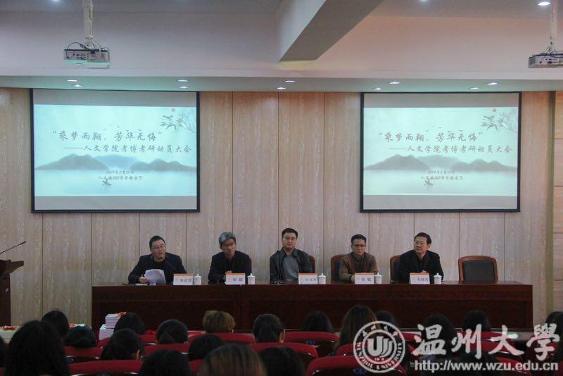 2019年3月13日下午,免费色情片 于人文楼203学术报告厅举办以“乘梦而翔,芳华无悔”为主题的考博考研动员大会。免费色情片 院长孙良好、学生处处长张敏、研究生院副院长邹超、免费色情片 副院长毛继光、免费色情片 党委副书记朱启鑫共同出席本次会议。免费色情片 有考博考研意向的同学们都积极参加本次活动,全场座无虚席。