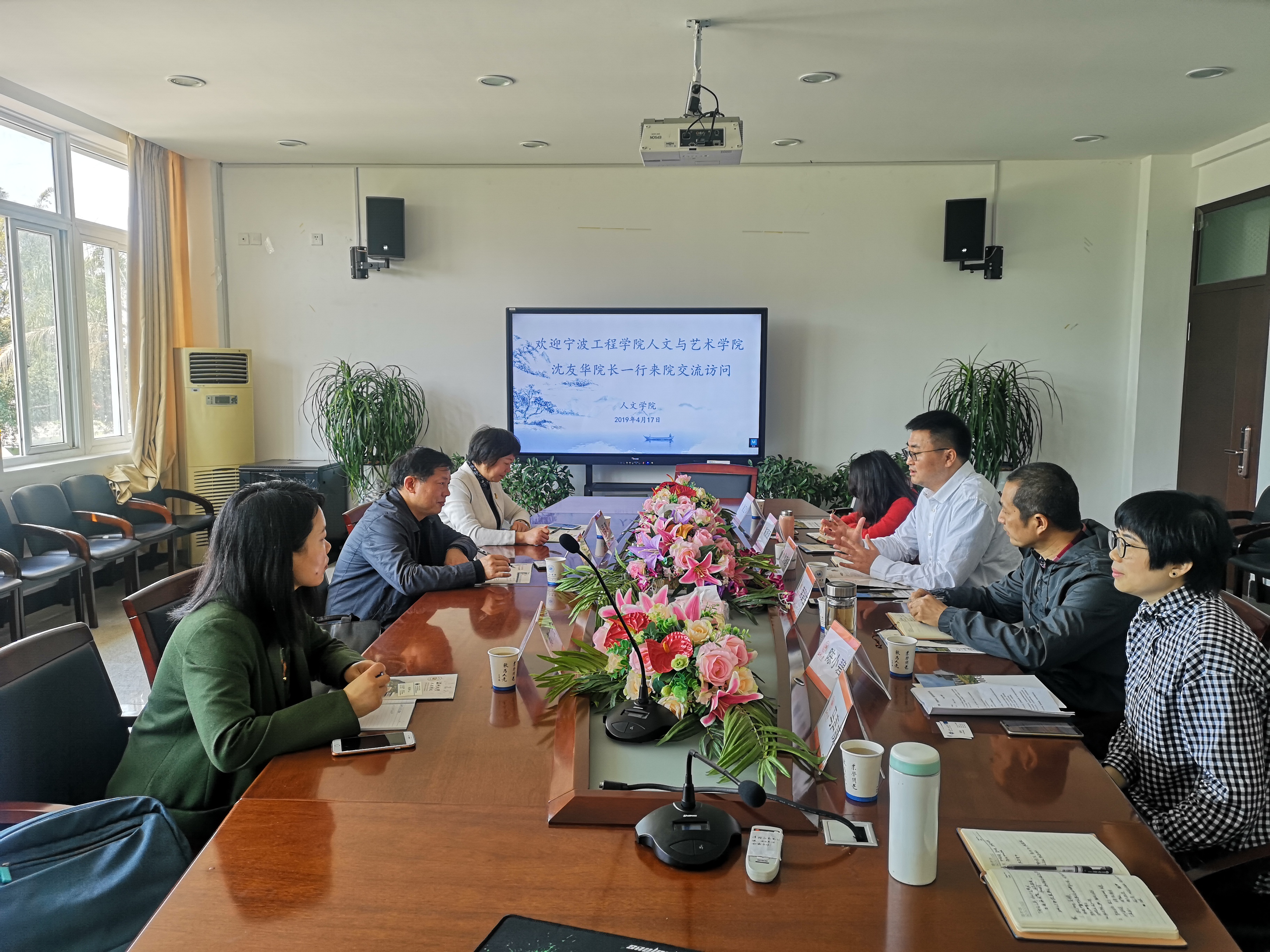 4月17日上午,宁波工程学院人文与艺术学院院长沈友华,副院长吕瑾及中文系副教授陈小亮来免费色情片 交流访问。免费色情片 孙良好院长、席留生副院长、中文系主任陈源源、广告系主任徐卫华、大学语文负责人陈小碧和办公室主任马声威热情接待了他们。双方就应用型学科专业建设、公共课程大学语文教学情况、专业硕士人才培养等方面进行了深入交流。