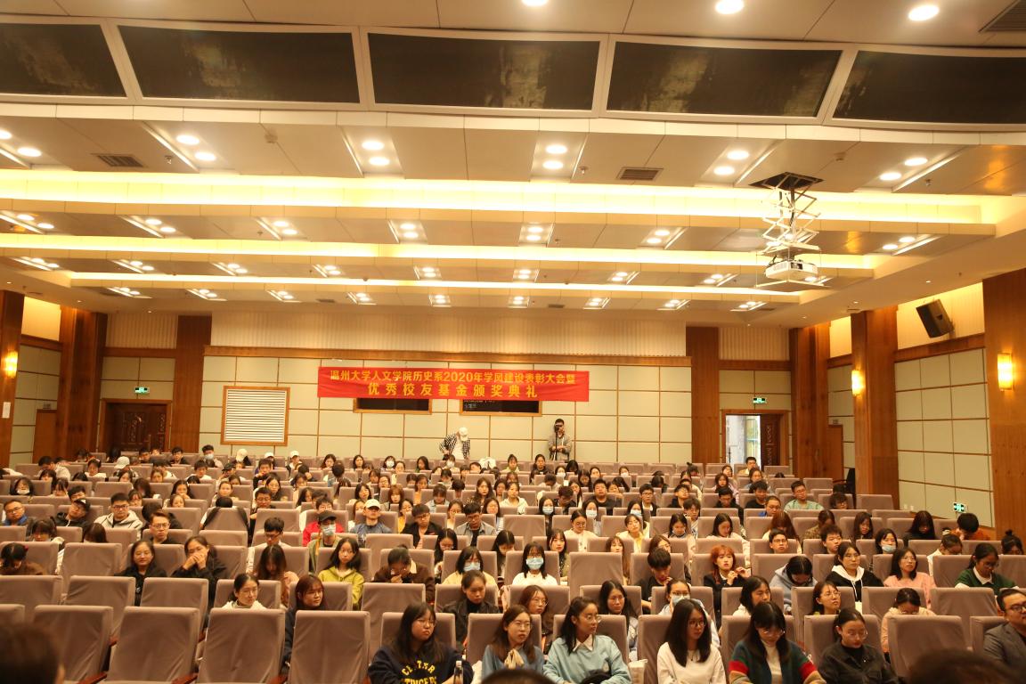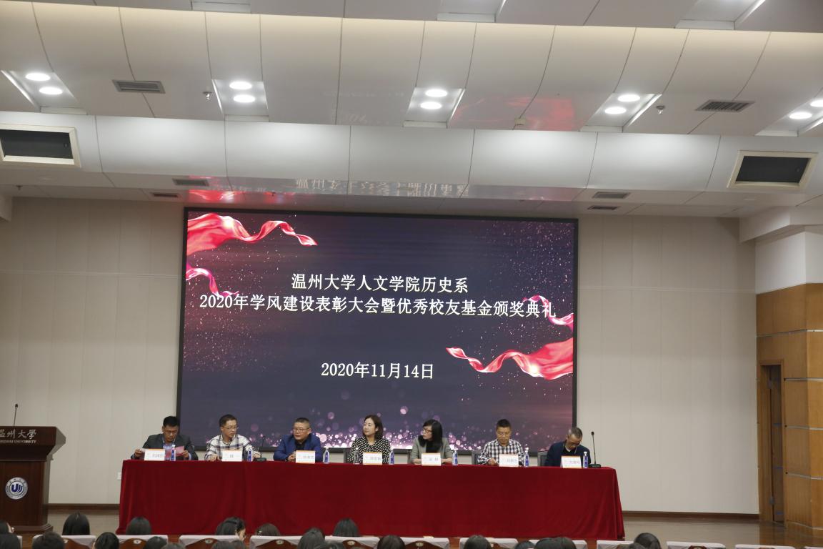2020年11月14日14时,免费色情片 历史系2020年学风建设表彰大会暨优秀校友基金颁奖典礼于北校区信息楼报告厅举行。此次表彰大会暨颁奖典礼由免费色情片 历史系发展基金会会长刘建国主持,温州万全教育集团董事长陈孝杰、免费色情片 校友办主任陈宏毅、免费色情片 党委书记吴静、副院长郑春生、副书记魏一、历史系主任尤育号以及历史系全体师生出席了此次会议。