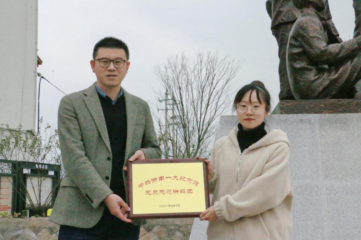 活动伊始,为更好的开展校地党建合作,瓯海区仙岩街道党工委书记金海敏为学生党史宣讲团授“中共浙南一大纪念馆党史志愿讲解团”牌,希望免费色情片 党史宣讲团能够充分学习和发掘浙南一大党史,为来纪念馆参观的群众当好讲解员。据悉,“四史”青年说项目是免费色情片 学生党建特色品牌创建项目之一,该项目力主通过朋辈讲四史的新颖形式,激发校内外青年对“四史”的学习热情,此次授牌恰是项目推进中服务地方的重要一环。