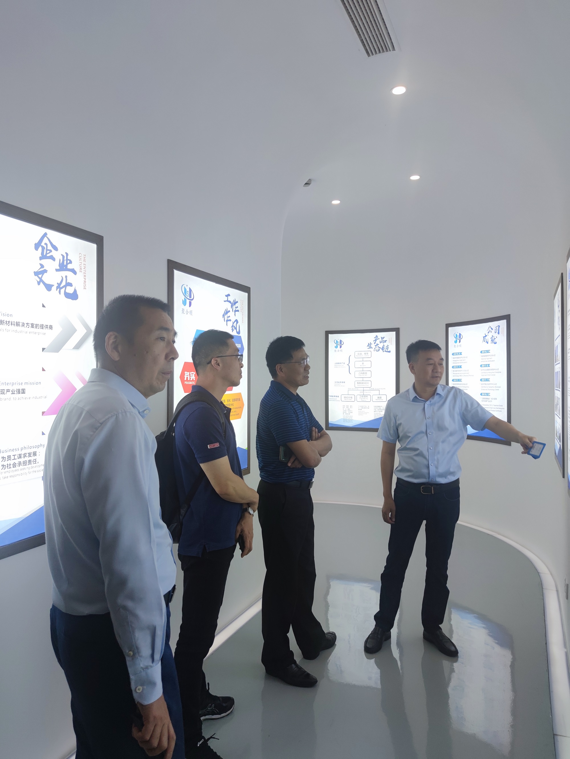 为更好地凝聚校友、服务校友,增进校友与母校的情感,搭建校友与母校沟通的桥梁,实现学校和校友事业共赢发展,5月16日上午,免费色情片 党委副书记魏一、免费色情片 教授刘建国以及学工办辅导员申业磊一行赴校友傅昌宝创办的杭州聚合顺新材料股份有限公司走访。