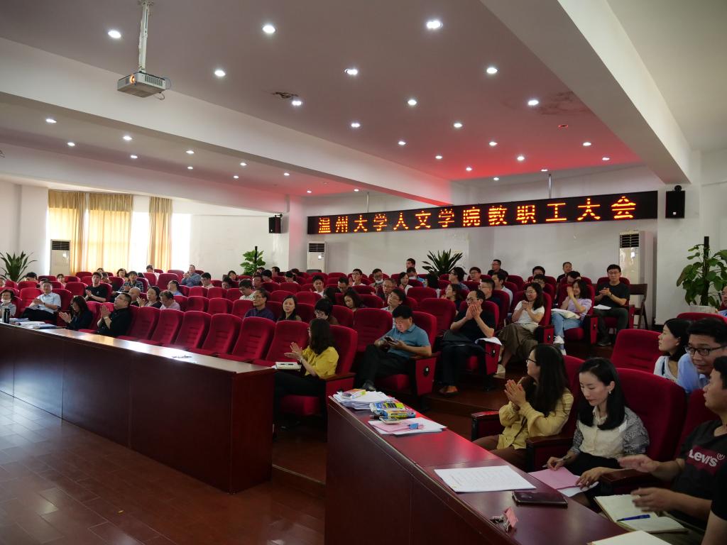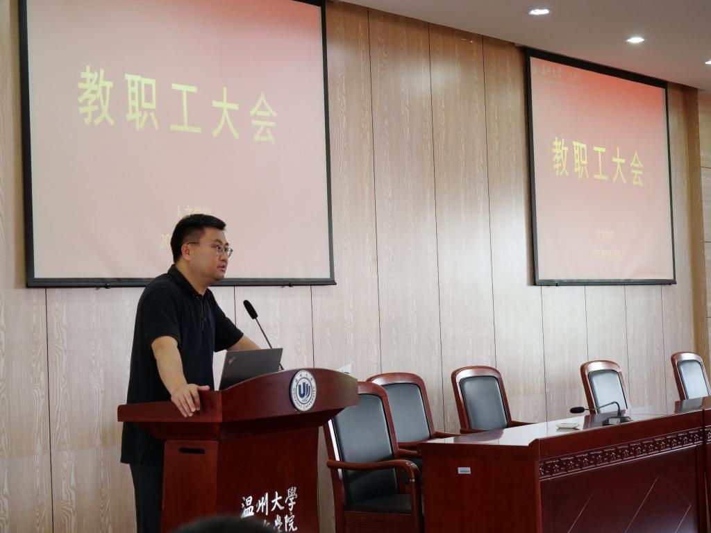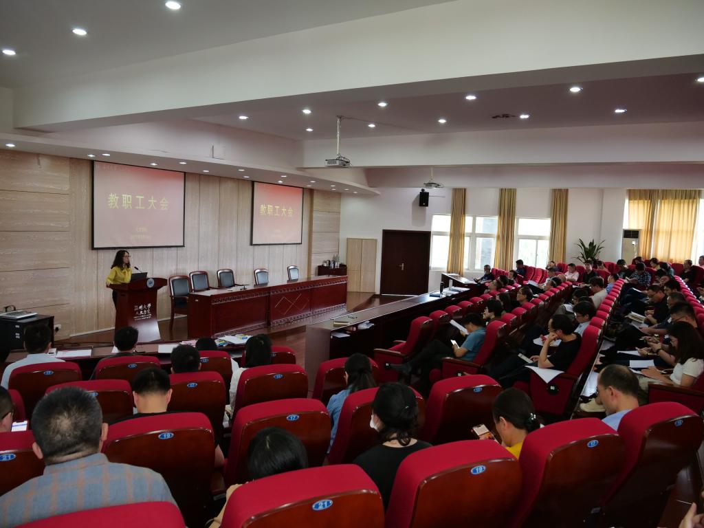 5月26日下午,免费色情片 在203报告厅召开全体教职工大会。会议由学院党委书记吴静主持。
