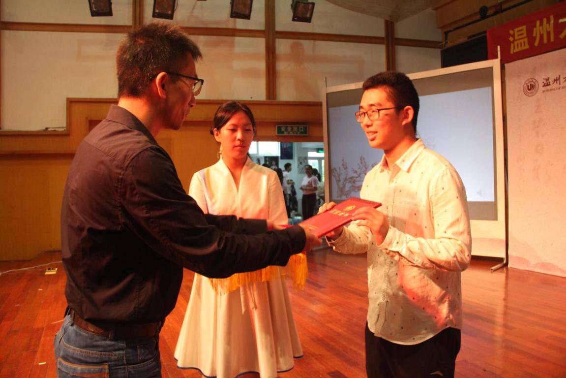 在点评时,杨万里教授为能够有这么多同学热爱诗词而感到欣慰,也希望提升题目的趣味性,让更多的同学参与到诗词大会中,要重在对诗词的理解,而非单纯考究知识本身。最后,两位评委老师分别为获奖选手颁发奖状,诗词大会在欢声笑语中圆满落下帷幕。