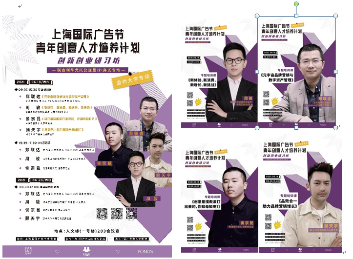 经广告系全体老师共同努力和精心筹备,6月19、20日,一场来自大上海的广告创意头脑风暴,将席卷免费色情片 。上海国际广告节把它的拳头公益品牌活动——青年创意人才培养计划创新创业研习坊搬进温大,来自上海国际广告节战略合作方——联合利华旁氏品牌、电通麦利博文、埃森哲互动与光弧科技的业界精英们将为温大广告学子带来精彩纷呈的创新创意创业的饕餮盛宴!