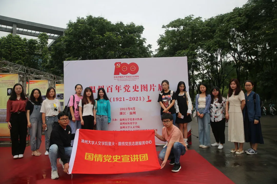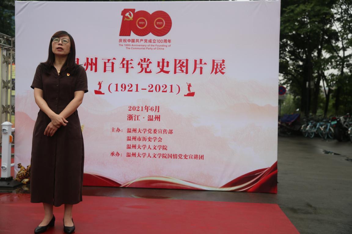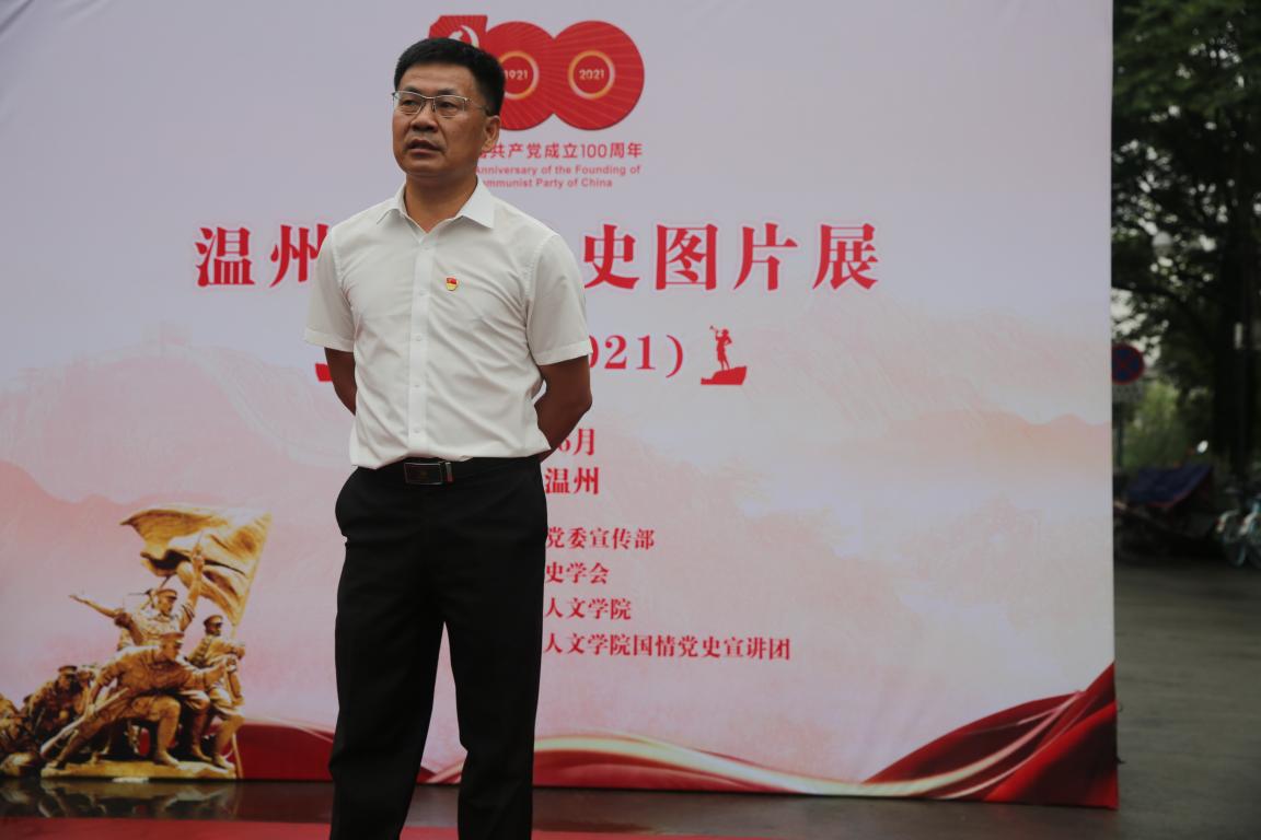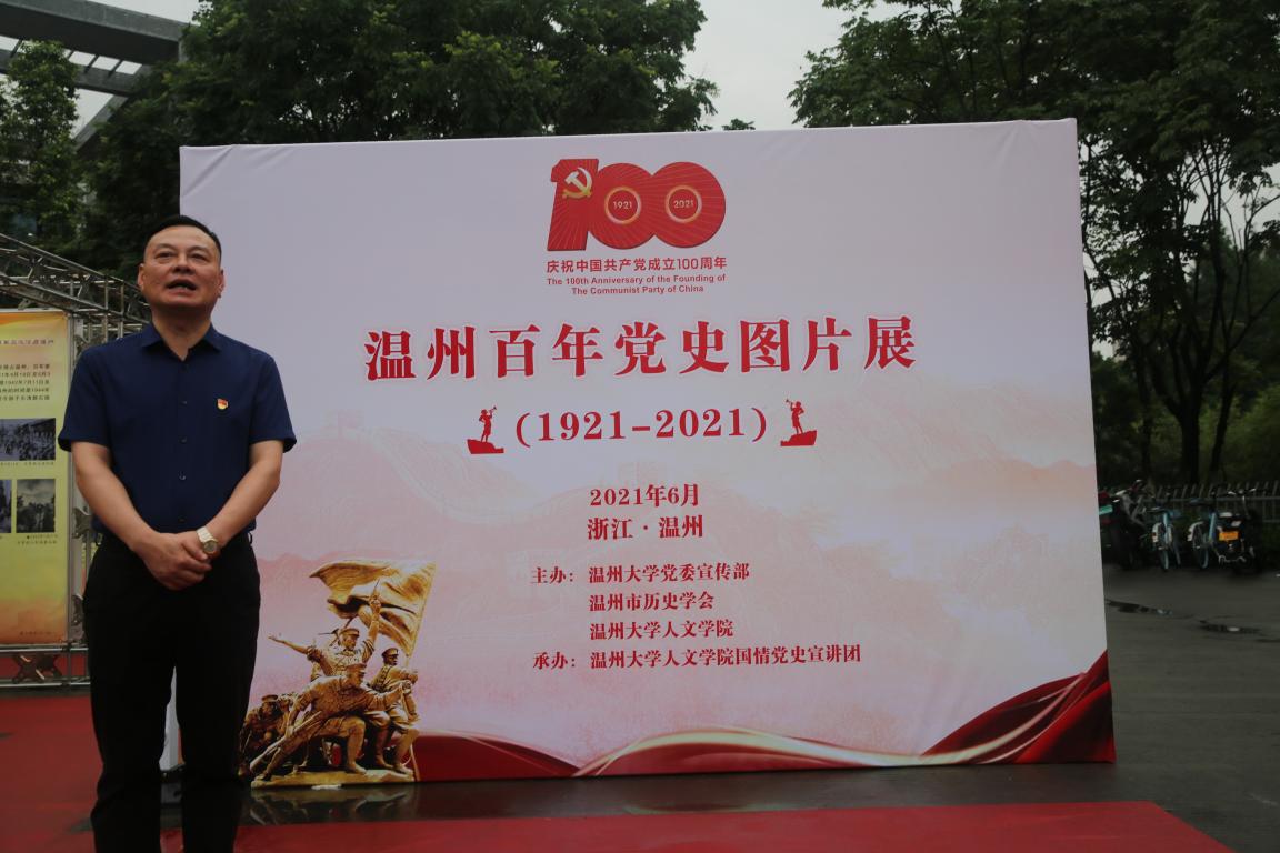 为庆祝中国共产党成立100周年,由免费色情片 党委宣传部、温州市历史学会、免费色情片 联合主办,免费色情片 国情党史宣讲团承办的“温州百年党史图片展(1921-2021)”于6月22日在免费色情片 育英图书馆前开幕。校党委委员、宣传部部长潘玉驹,免费色情片 党委书记吴静、党委副书记魏一、历史系教授刘建国及师生党员代表等出席。