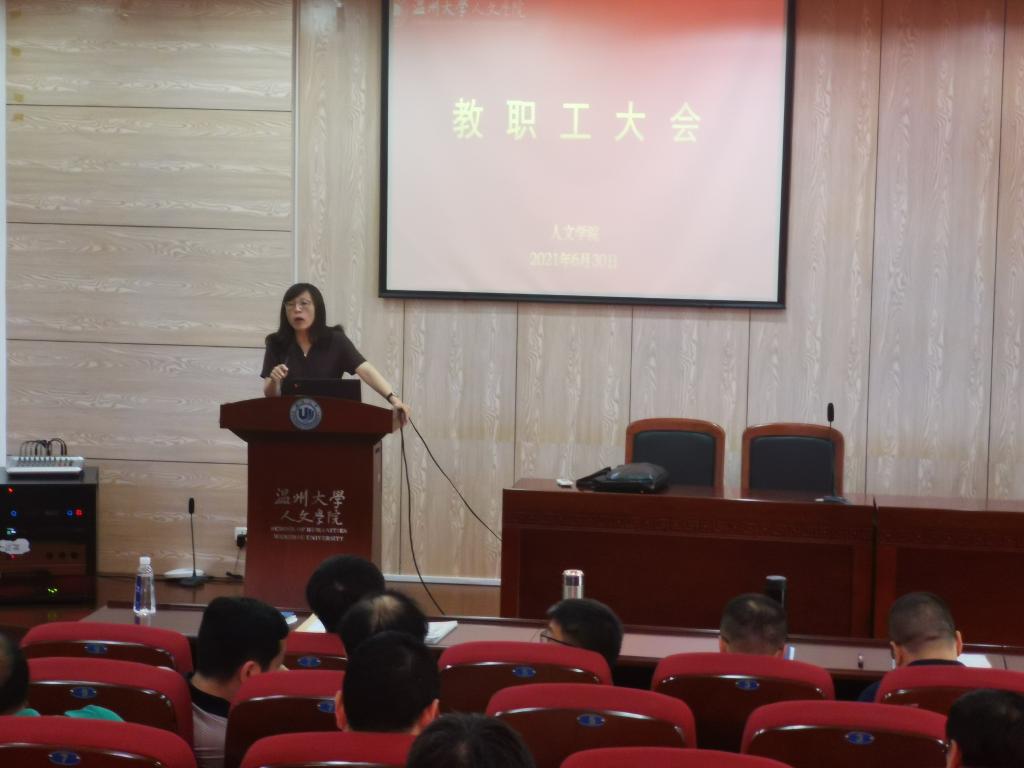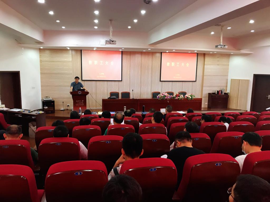 6月29日下午,免费色情片 在203报告厅召开了全体教职工大会。学院领导班子及全体教职工参加本次会议,会议由学院党委书记吴静主持。