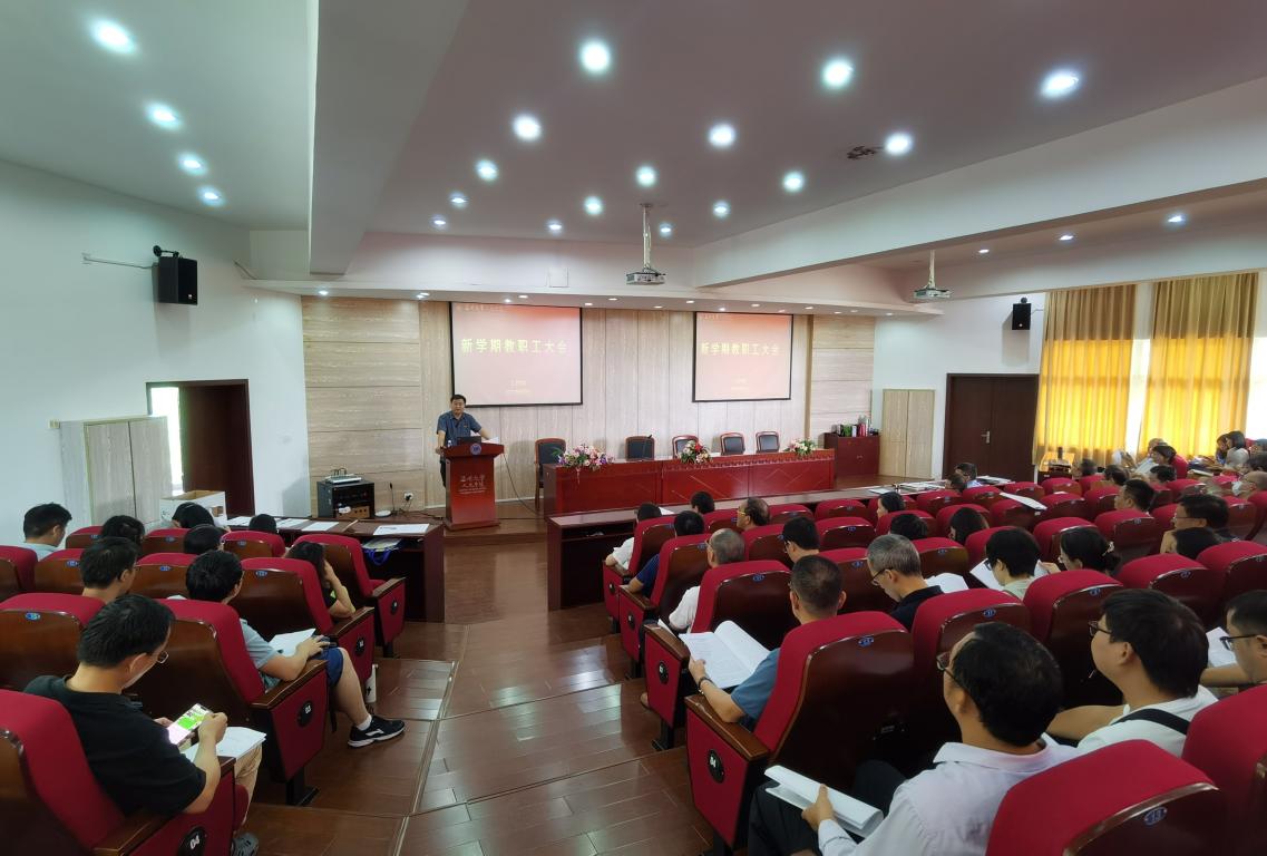 9月8日下午,免费色情片 新学期第一次教职工大会暨理论学习会在人文楼203报告厅召开,学院领导班子成员和全体教职工参加会议,会议由孙良好院长主持。