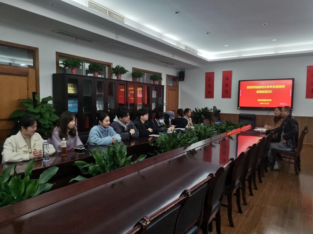 根据前期安排,温州三中见习工作负责人与温大师生于8:30在行政楼406举行了简短的欢迎仪式。