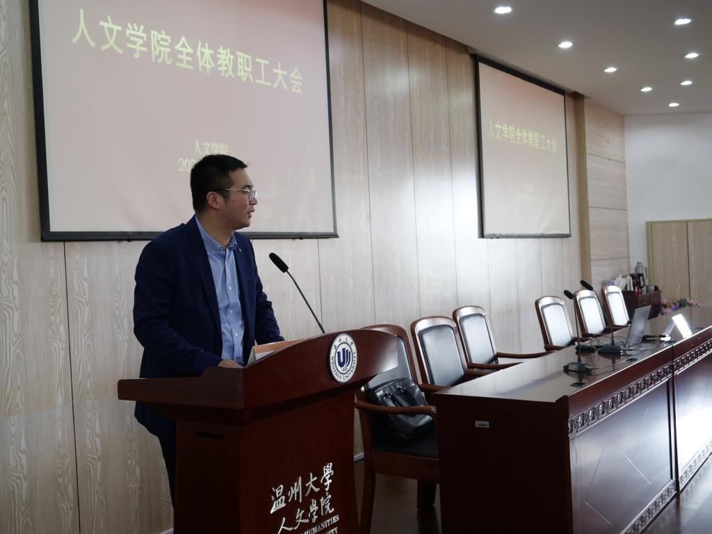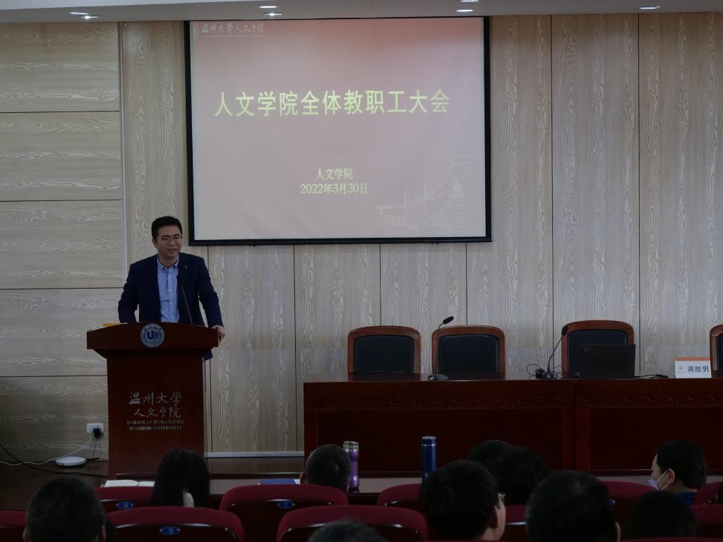 3月30日下午,免费色情片 于人文楼203报告厅召开了全体教职工大会暨理论学习会,会议由学院党委书记江秀景主持,学院领导班子和全体教职工参加会议。