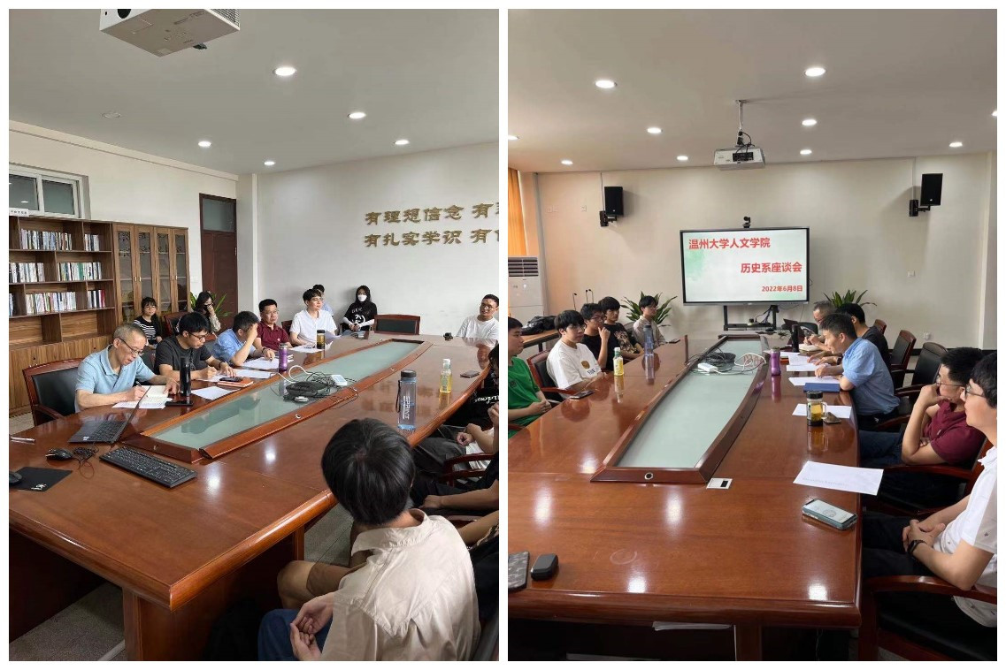 2022年6月8日下午,免费色情片 历史系于人文楼213会议室召开了21级历史系座谈会,郑春生、刘建国、尤育号、唐运冠、陈鸿超、王鹏老师出席了该座谈会。