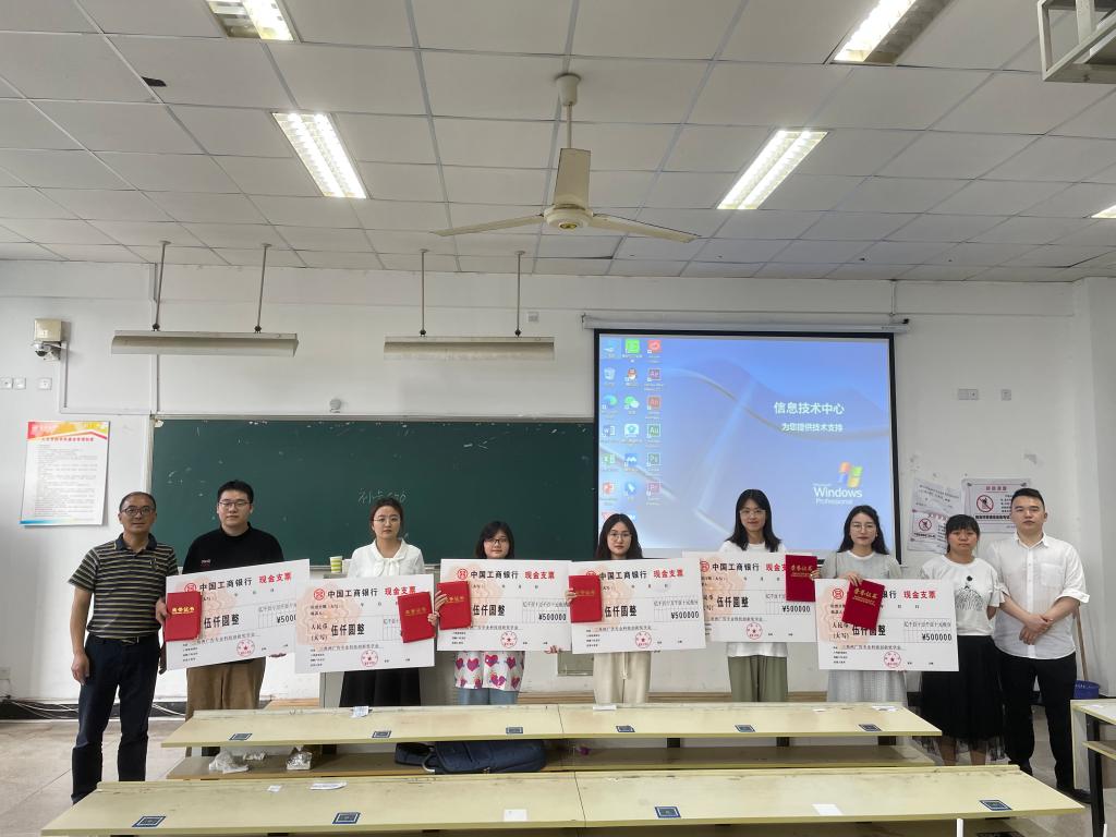 温州三角洲投资顾问有限公司人力资源总监徐维泽为获奖学生颁奖,并与获奖学生合影留念。