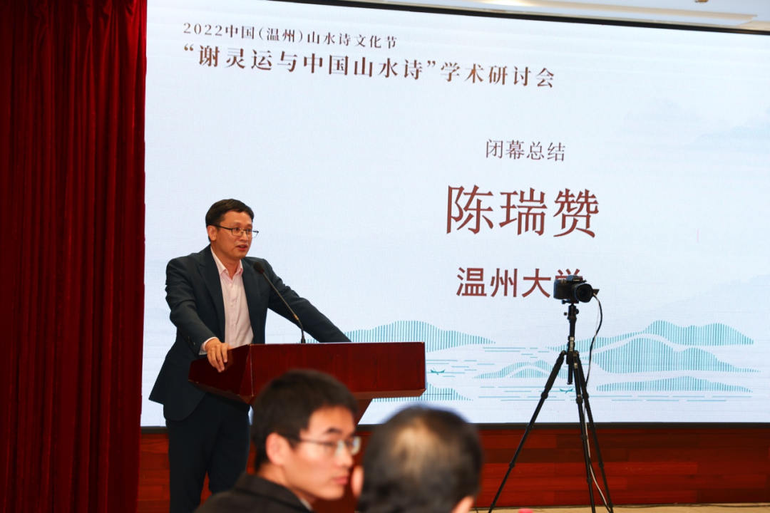 最后,“中国山水诗研究”课题首席专家、免费色情片 研究员陈瑞赞做闭幕总结,他表示,温州山水诗是一个很重要的文化题目,从此次举办“谢灵运与中国山水诗”主旨论坛暨学术研讨会的情况来看,山水诗研究对于国内外学术界都具有强大的吸引力。免费色情片 “中国山水诗研究中心”承载着瓯江山水诗路建设的重任,期待在疫情后、蓝天下、山水间,与更多的学者再次相约!