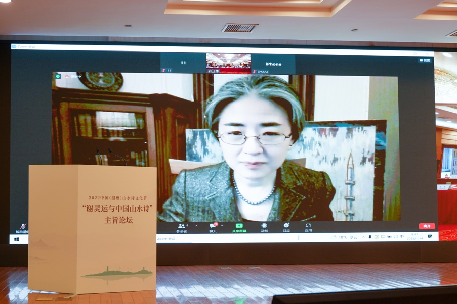 11月4日上午,谢灵运与中国山水诗主旨论坛在温州市人民大会堂举行。作为2022中国(温州)山水诗文化节的首场活动,论坛采用线上与线下结合的方式同步进行,来自海内外50余位专家、学者受邀与会。10位学者进行了精彩的主旨发言,从不同角度探讨中国山水诗文化。