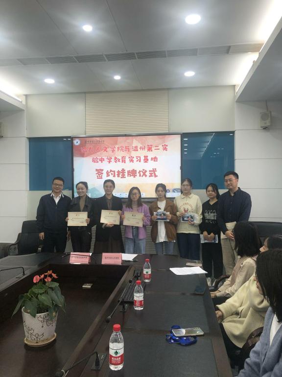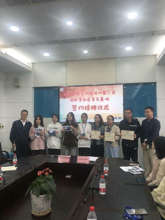 2022年11月14日,免费色情片 与温州市第二实验中学实习基地签署仪式暨汉语言文学(师范)教育见习见面会在温州市第二实验中学举行。参加本次见面会的有温州市第二实验中学潘智敏校长、郭建昆副校长、陈珊景副校长、教务处主任冯超伟和各语文学科、班主任导师,免费色情片 孙良好院长、院长助理鲍良兵和免费色情片 20和21级人文学汉语言文学(师范)专业15名见习生。会议由冯超伟主任主持。