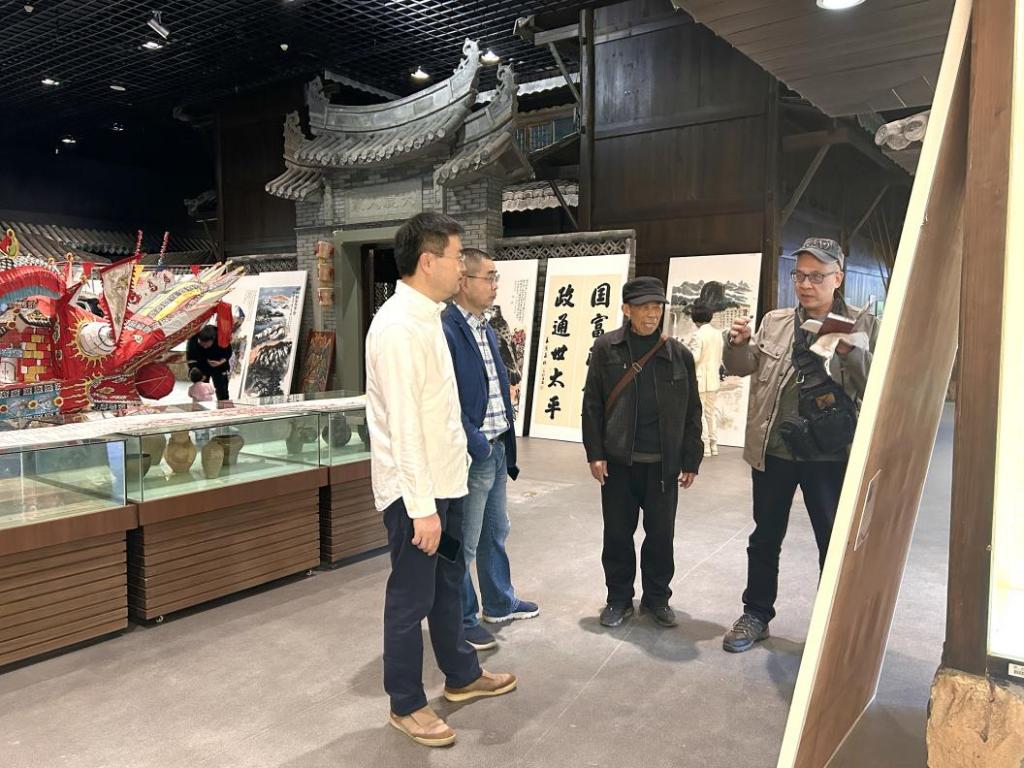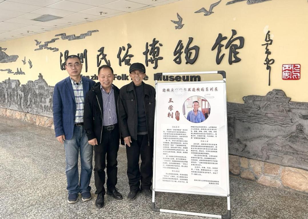 (泉川艺社社长、茶山街道新乡贤联谊会秘书长王大普、 “农民书画家”王学钊与免费色情片 温州民俗博物馆万军合影)