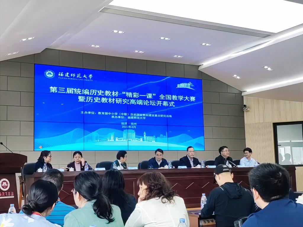 另外,本次大赛还同步举办历史教材研究高端论坛。华中师范大学前校长、书记、教育部国家教材委员会专家委员、中央马克思主义理论研究和建设工程课题组首席专家、教育部义务教育历史课程标准修订组组长马敏教授,首都师范大学资深教授、马工程首席专家、教育部普通高中历史课程标准和义务教育历史课程标准修订组长,国家统编普通高中历史教材总主编、义务教育历史教材编委会主任徐蓝教授,复旦大学文史研究院院长、教育部历史学类教学指导委员会副主任委员、上海历史教育教学研究基地主任、高中统编必修教材《中外历史纲要》编写者、选择性必修3《文化交流与传播》主编之一章清教授,首都师范大学教育部基础教育教学指导委员会历史专业委员会主任委员、教育部初中和高中历史课程标准修订组核心成员、统编初中历史教材执行主编、统编高中历史教材分册主编叶小兵教授等专家都与会做了精彩讲座,极大开拓了与会师生的学术和教研视野。