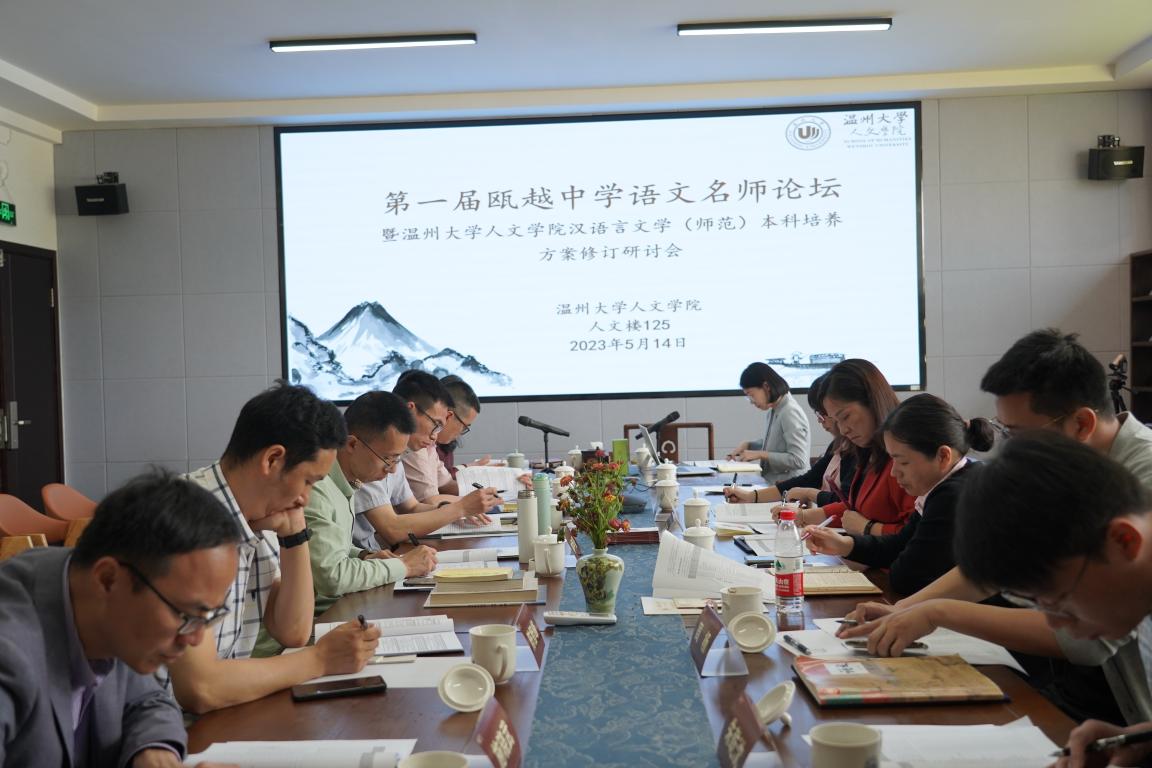 2023年5月14日上午,免费色情片 与温州市教育教学研究院联合举办的第一届瓯越中学语文名师论坛暨免费色情片 汉语言文学(师范)本科、语文专硕培养方案修订研讨会在人文楼203会议室成功召开,会议议题为“面向未来的教师能力培养”,温州市中学语文教学教研员、名校长和名师等23位专家共论中学语文教师核心能力的培养。