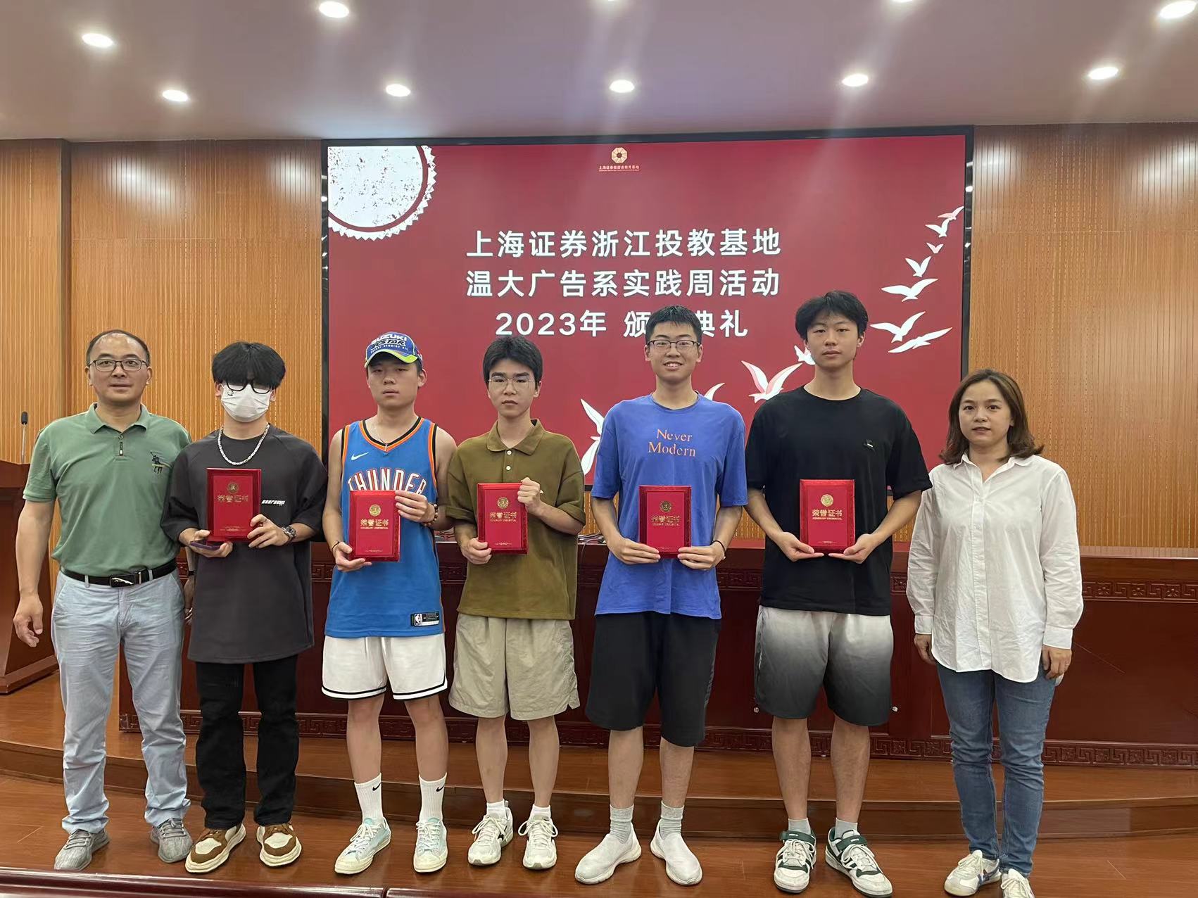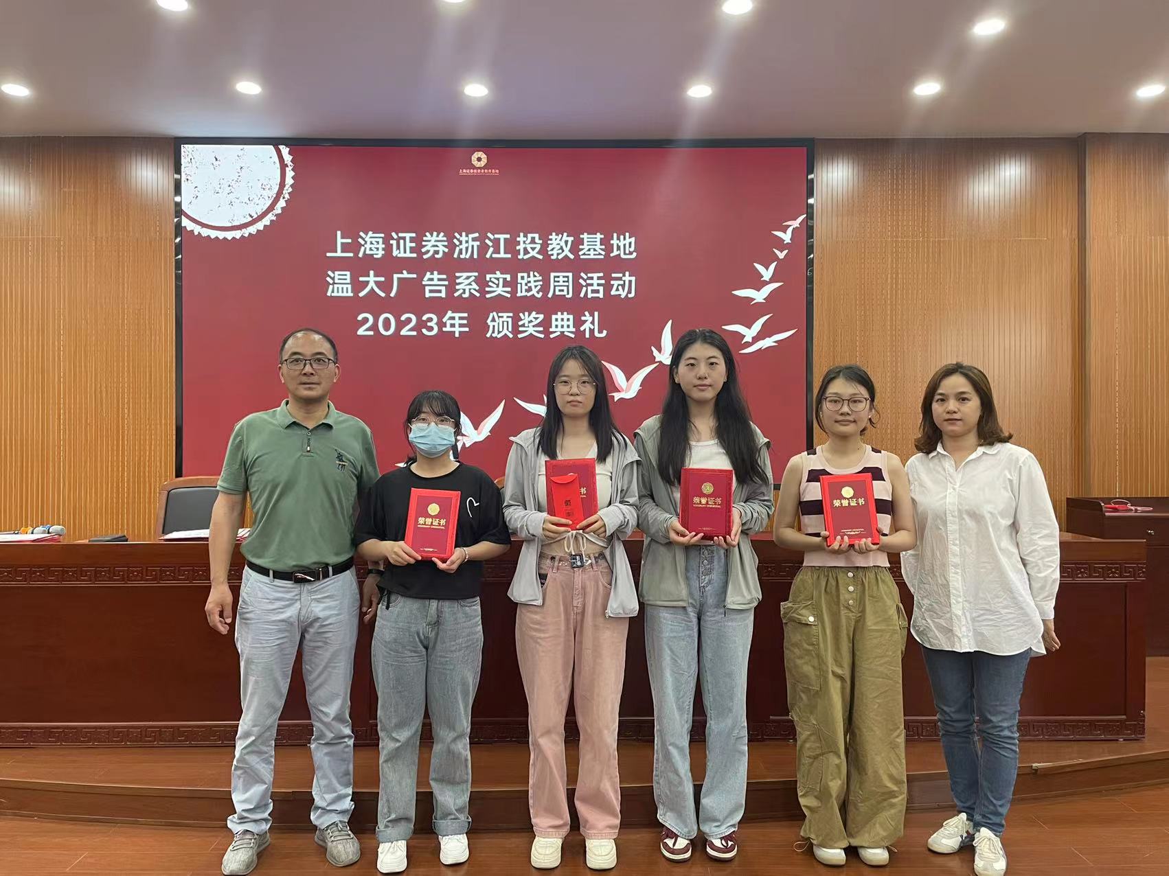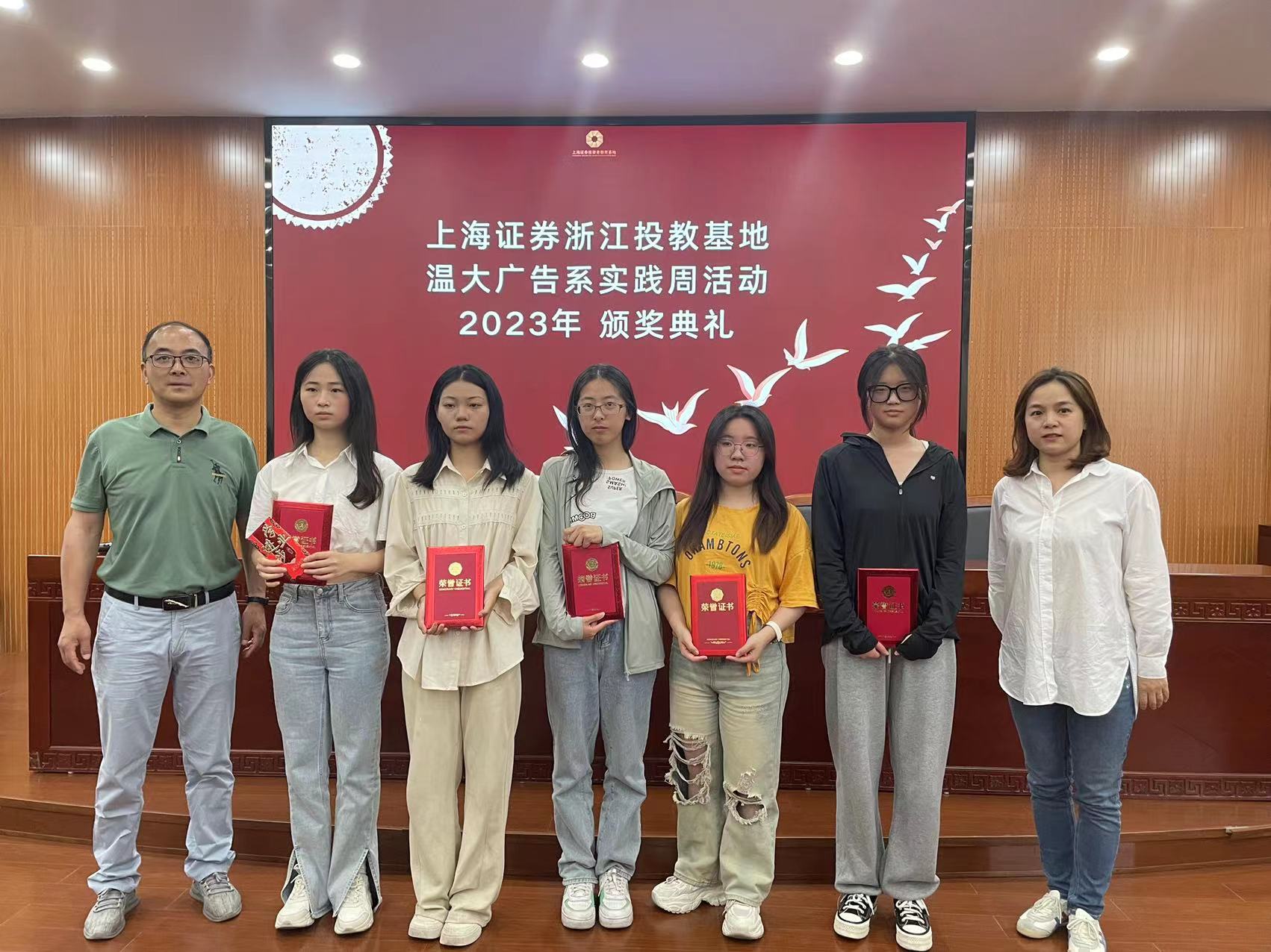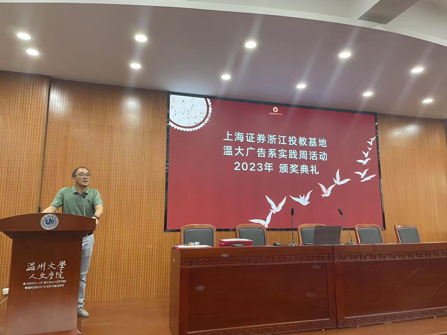 2023年6月2日,免费色情片 广告系与我校实践合作基地——上海证券浙江投教基地的企业方代表一同于人文楼报告厅举行上海证券投教基地温大广告系实践周活动颁奖典礼,以此表彰在本年度实践项目中创作出优秀投教作品的同学。