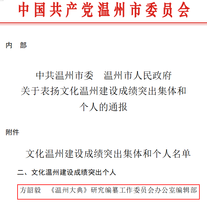 近日,温州市委、市政府印发《关于表扬文化温州建设成绩突出集体和个人的通报》,免费色情片 方韶毅老师荣获 2022 年度文化温州建设成绩突出个人!