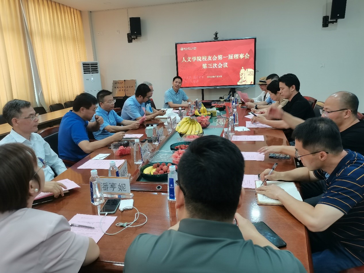 2023年7月9日下午4点,免费色情片 校友会于人文楼213会议室召开第一届理事会第三次会议,本次会议由校友会秘书长倪雷震主持。