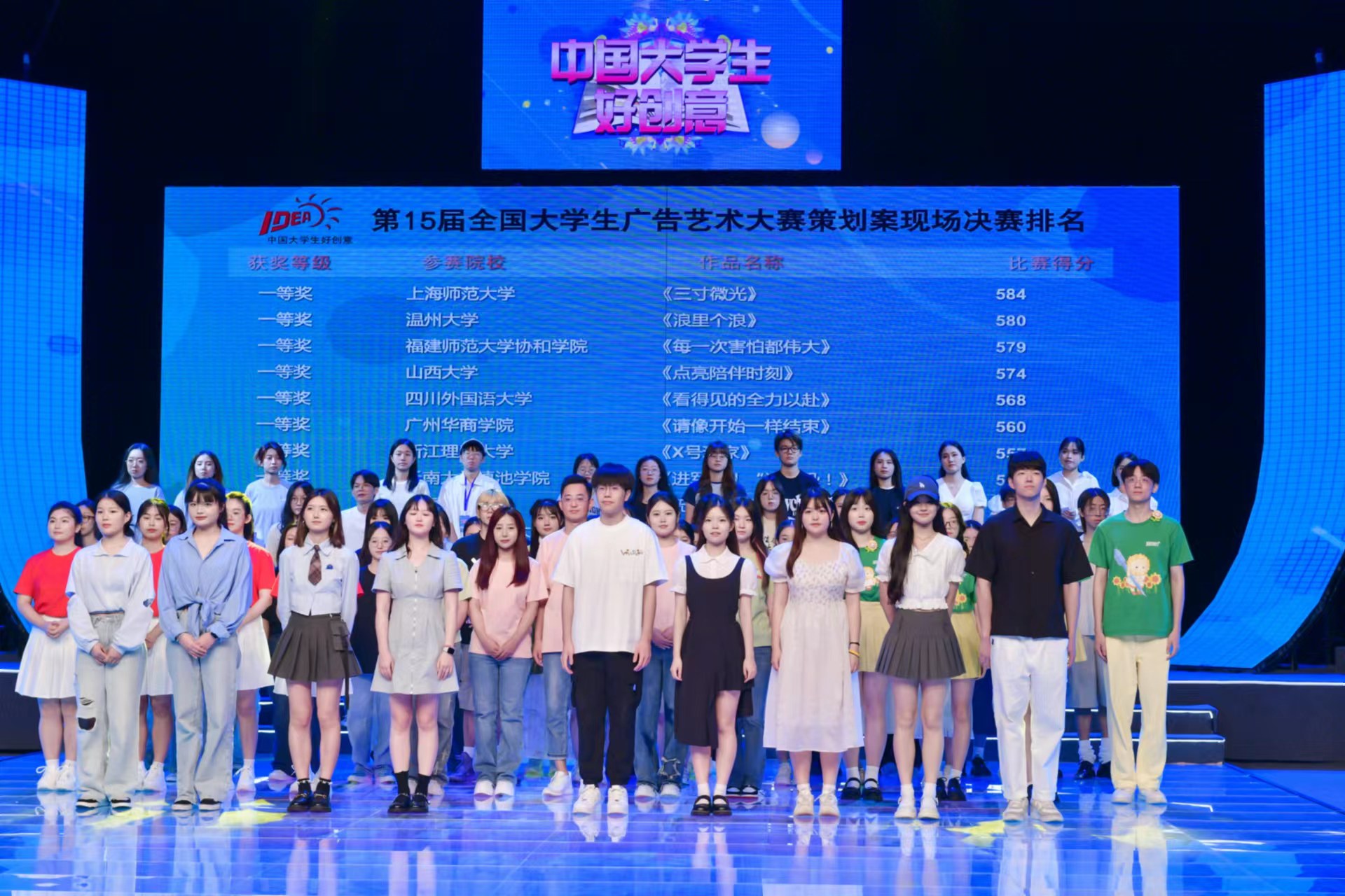2023年9月9日、10日,“中国大学生好创意”第15届全国大学生广告艺术大赛策划案现场提案决赛亮相温州,免费色情片 广告系2020级四位同学以总分第二的成绩获得策划案类一等奖。