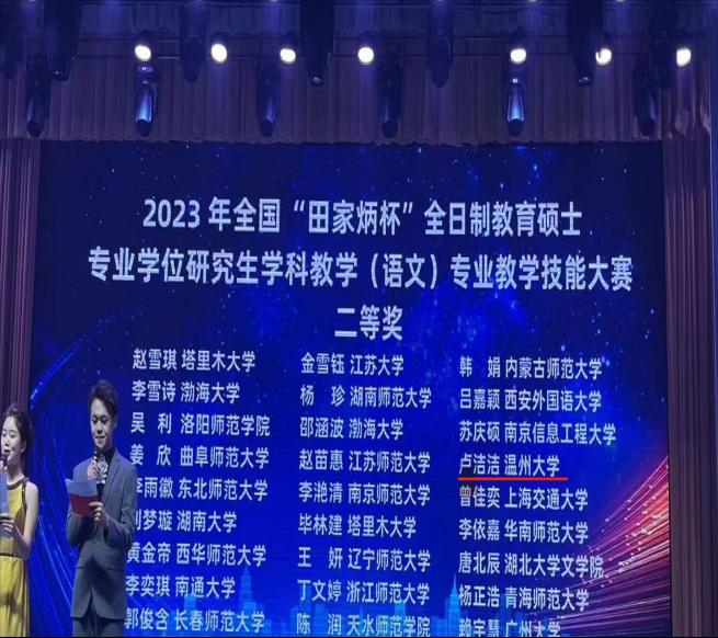 2023年10月14-15日,“田家炳杯”全日制教育硕士专业学位研究生学科教学(语文)教学技能大赛决赛在长春师范大学成功举办。免费色情片 2021级学科教学(语文)专业硕士研究生卢洁洁凭借扎实的专业基础和出色的教学技能荣获二等奖,同时罗进近老师荣获优秀指导教师。