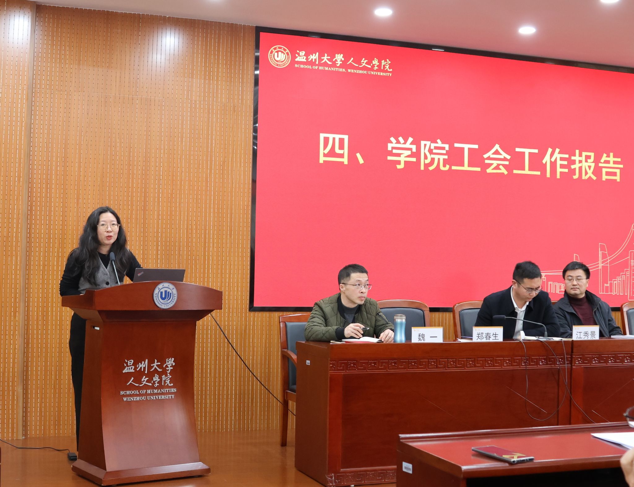 3月6日下午,人文学院第五届教职工暨工会会员大会第四次会议在人文楼203报告厅召开。学院领导班子、工会主席蒋述,以及全体教职工参加会议。会议由郑春生副院长主持。