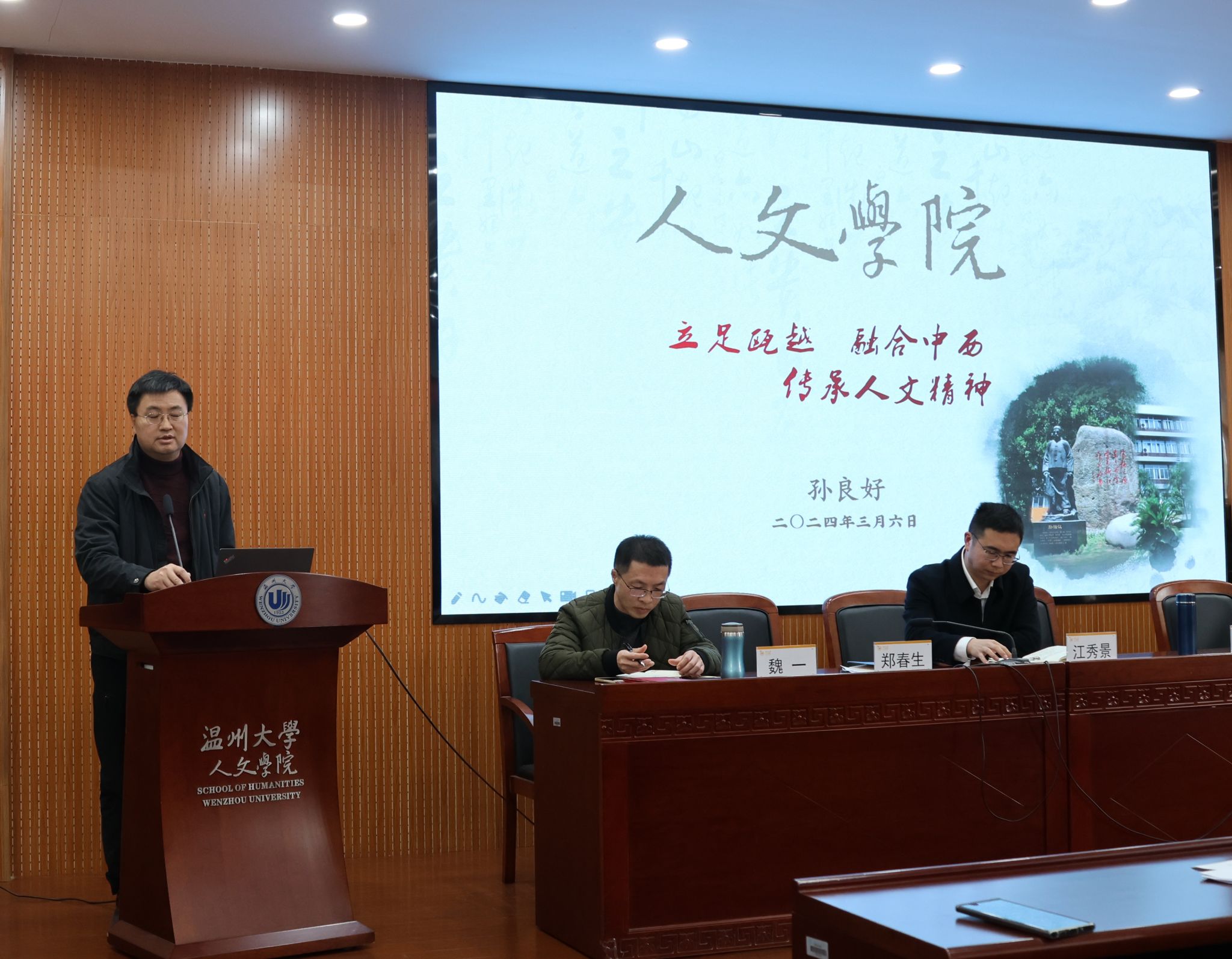 孙良好院长作2024年度人文学院工作报告。孙院长指出,2024年免费色情片 的工作主题主线为“聚焦1612,谋划2024” ,即锚定申博目标,聚焦6个“一流”(一流人才、一流学科、一流专业、一流基地、一流环境、一流治理),实施12个重点项目,奋力推进免费色情片 高质量内涵式发展。随后,孙院长对12个重点项目进行了强调和部署。一是全力推进中国语言文学学科申博最后一环;二是人才引育工作力争突破完成;三是持续推进国家语言文字推广基地建设;四是积极培育教学成果;五是做好学生学科竞赛提质项目;六是提升就业率升学率;七是力争学生规模扩容;八是做好继续教育增效项目开发;九是提高团组织领航聚力;十是夯实党建基础;十一是提升学院凝聚力建设;十二是做好岗位聘任及分配方案调整。孙院长强调,免费色情片 全体同仁要围绕学院“聚焦1612,谋划2024”的主题主线,凝心聚力,赓续前行,奋力推进免费色情片 高质量内涵式发展。