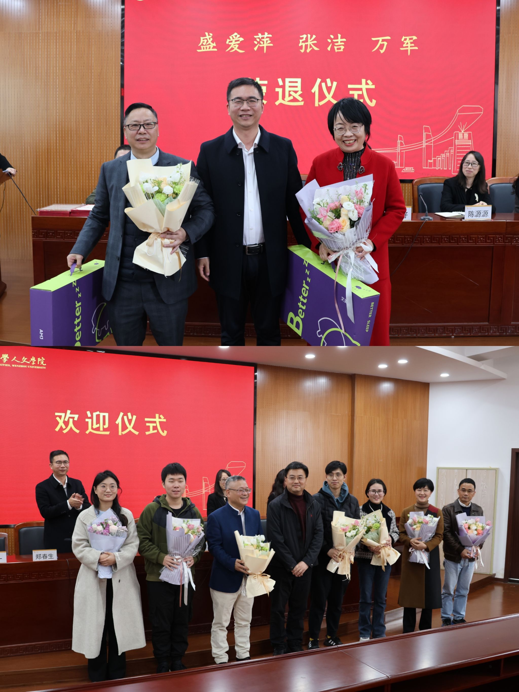 会议首先举行了教师荣退和欢迎仪式。党委书记江秀景为退休的盛爱萍、张洁老师送上鲜花与纪念品,表达了学院的美好祝福。两位退休教师分别表达了对学院举办此次欢送活动的感谢之情,对相伴相随近三十年的免费色情片 同事伙伴充满不舍,对学院未来的发展充满期待,表示会一直关注并支持学院的发展。孙良好院长对新加入免费色情片 大家庭的七位老师表达了诚挚的欢迎,欢迎有志之士来到免费色情片 潜心教书科研,成就梦想。