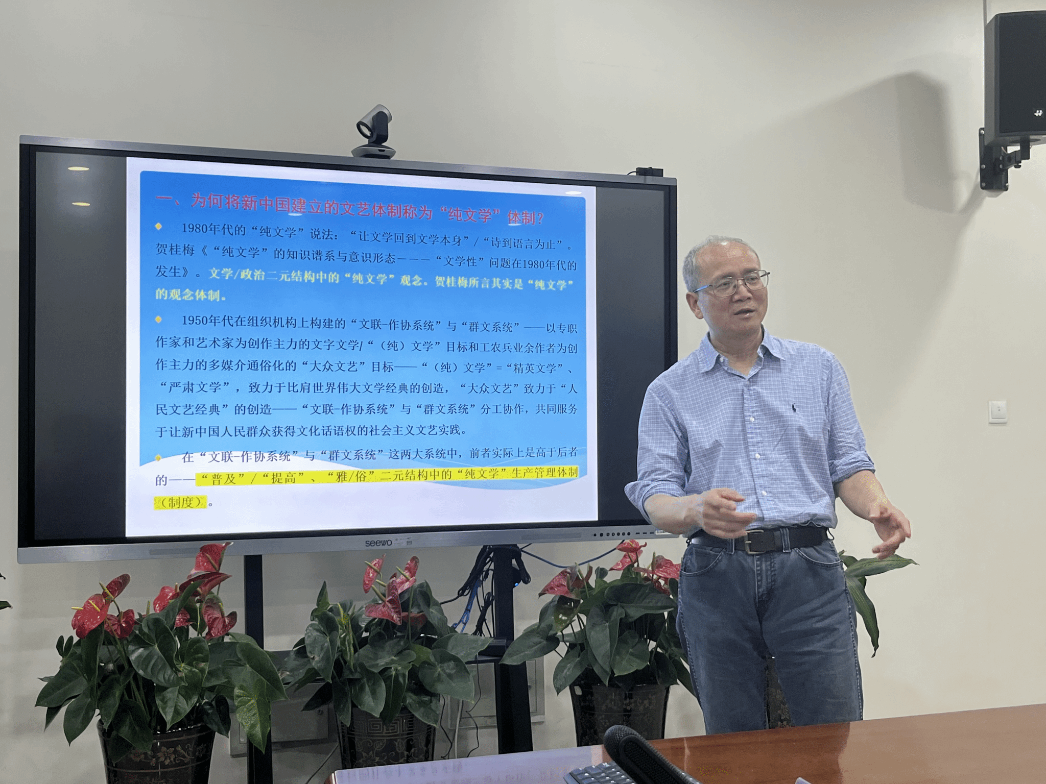 2024年5月17日,上海大学博士生导师、中国现当代文学学科带头人钱文亮教授受邀来我校讲座,与我校师生分享《当代中国的“纯文学”体制与1980年代的市场化改革》。活动在人文楼213学术交流中心举行,中文系副主任李广旭博士主持。
