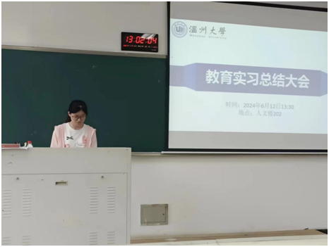 其次,温州市南浦实验中学锦绣校区实习点林桐安、免费色情片 附属榕园学校实习点郑子琰、平阳县鳌江中学实习点黄玉婷、瓯海区第一高级中学实习点周佳颖,分别从教育实习工作、日常生活、心得分享等方面介绍了各个实习点的具体情况,汇报了本次实习所取得的成果与收获。在实习过程中,各位组长认真负责,为同学们解决了许多实习中具体的问题,21历本的全体同学们也积极配合,踏实肯干,体现出历本人严谨认真的态度。