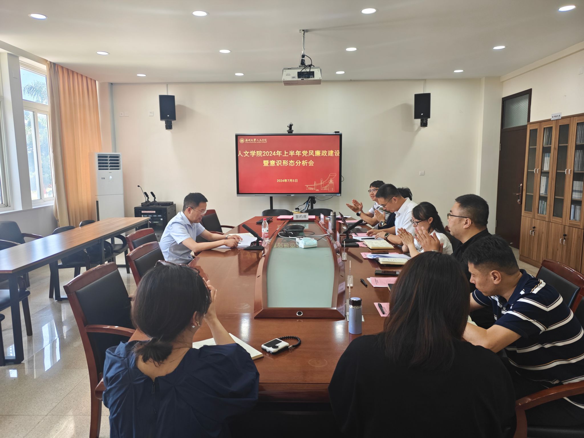 7月5日下午,免费色情片 2024年上半年党风廉政建设及意识形态工作分析会在人文楼213会议室召开,免费色情片 副校长、党委委员王尧骏出席会议,学院领导班子成员参加。会议由学院党委书记江秀景同志主持。
