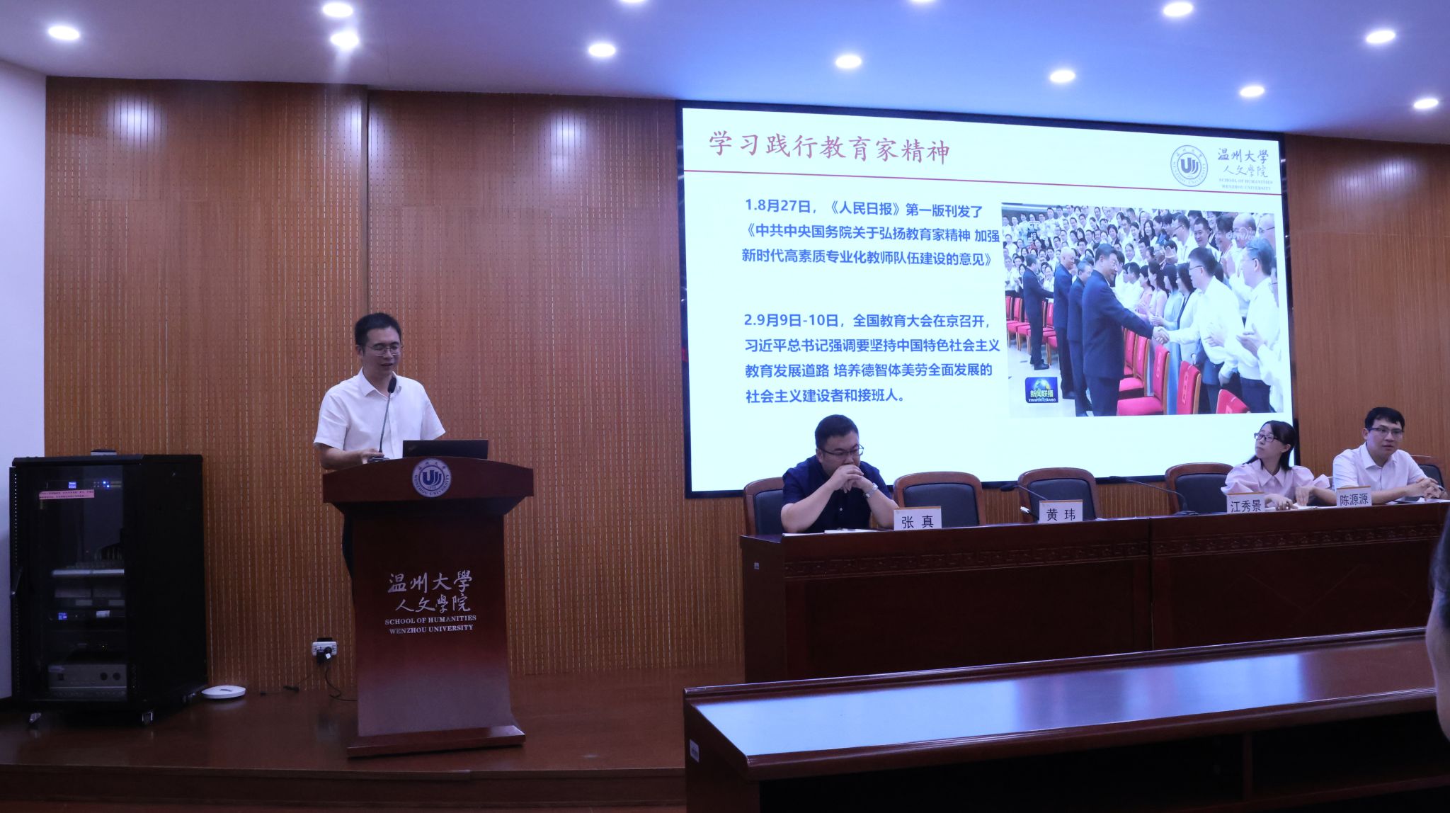 2024年9月11日下午,免费色情片 召开教职工大会暨弘扬教育家精神学习会。学院领导班子,全体教职工参加会议。会议由院党委书记江秀景同志主持。