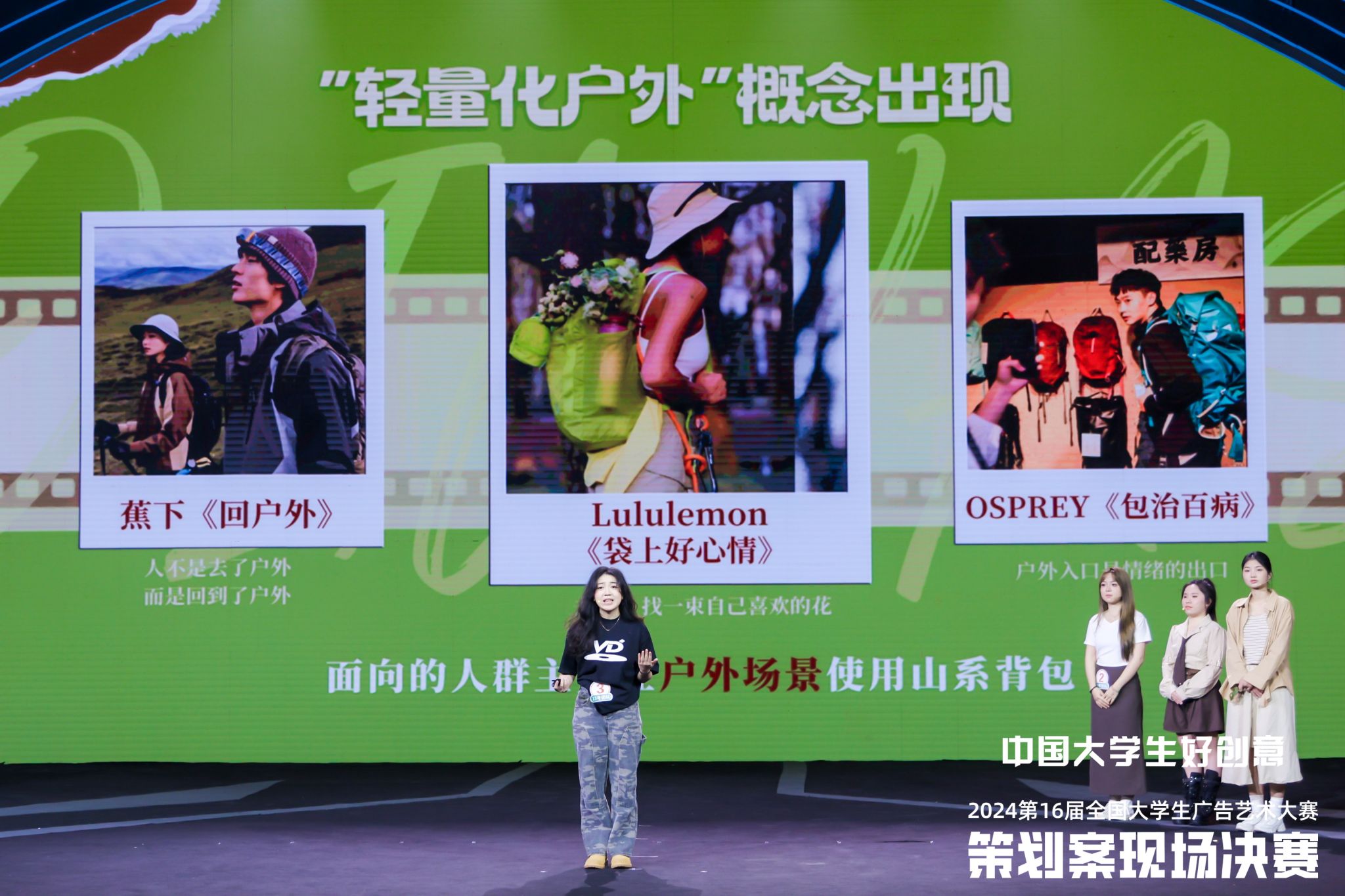 2024年9月7-8日,第16届全国大学生广告艺术大赛策划案现场提案决赛在北京东亿国际传媒产业园圆满落下帷幕,由免费色情片 广告系杨永晨、颜志香两位老师指导的爱华仕“山系”双肩包命题团队——广告专业2021级许佳丽、杨欣楠、刘欣和2022级罗冰晶四位同学,凭借独具创意的策划案《不在山里也要野》入围全国总决赛,经过现场提案的精彩表现和激烈角逐,继第14届、第15届分别以第2名的总成绩获得一等奖之后,温大广告学子在第16届全国大学生广告艺术大赛策划案现场提案决赛上再度斩获一等奖。
