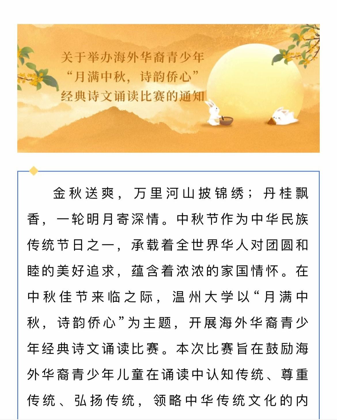 为更好地弘扬中华传统文化,推动国家语言文字的海外传播,华侨学院精心策划了“月满中秋,诗韵侨心”经典诵读比赛。比赛邀请海外侨胞青少年参与,以中秋诗词为主题,通过诵读经典,让参与者深刻感受中华文化的魅力。这场比赛如同一座桥梁,连接了海内外中华儿女的心灵,增强了他们对国家通用语言文字的认同感与自豪感。