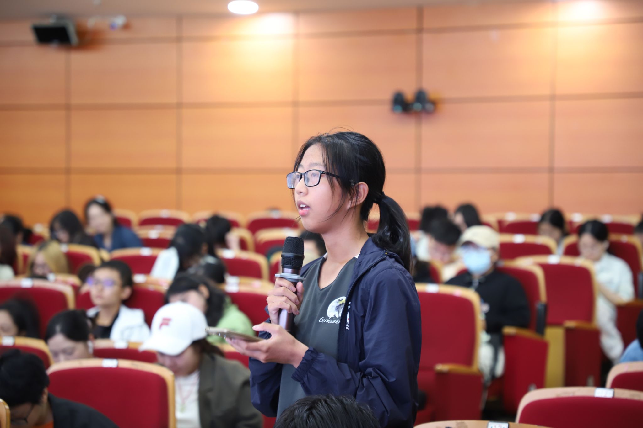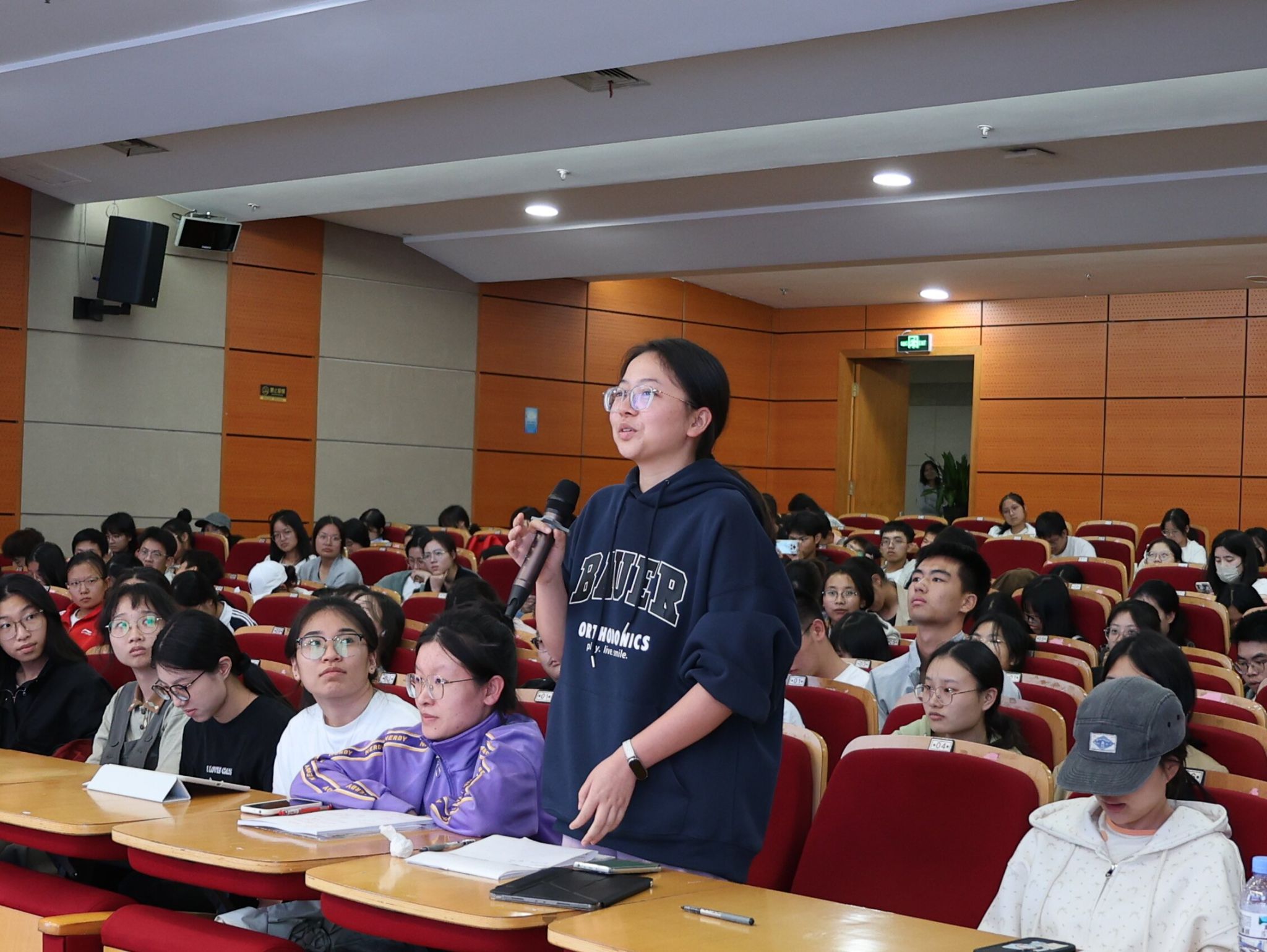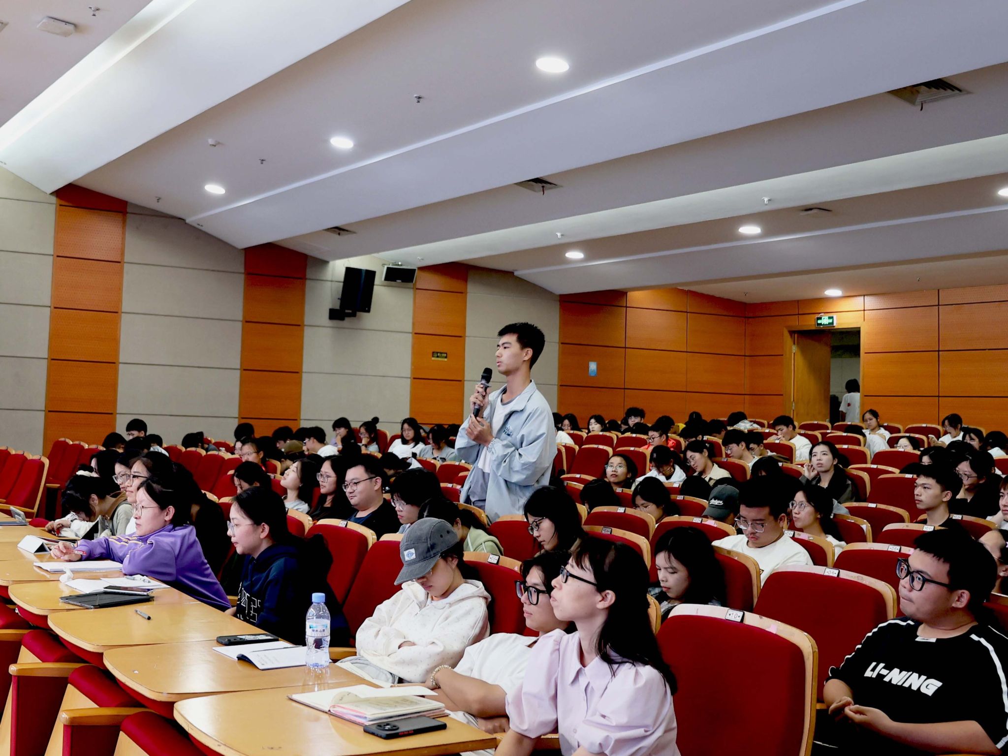 现场气氛热烈,同学们兴趣盎然。在提问环节,有同学提到修辞手段的“新”与“旧”的问题,有同学提到鲁迅的《故乡》“苍黄的天底下,远近横着几个萧索的荒村”,“横”字何解……同学们积极举手提问,教授们则耐心倾听并给予严谨、富有启发性的解答。这一互动环节不仅加深了大家对修辞学的理解,更激发了大家对学术研究的兴趣和热情。