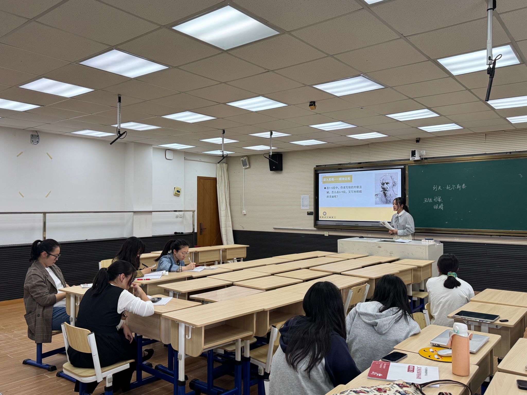 本次公开展示课由实习生任怡斐和实习生王妍善分别开展十分钟的《回忆我的母亲》、《列夫·托尔斯泰》模拟上课汇报。