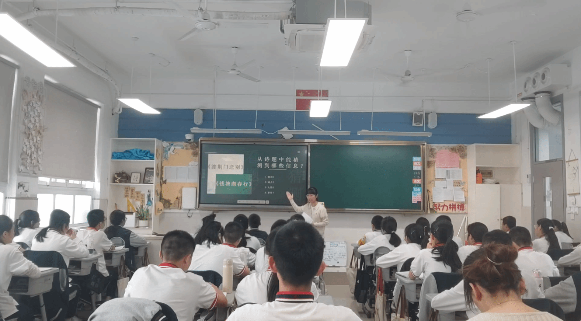 学生的思考空间不足,教学停顿时间太短。在教学过程中,课堂生成的内容比较局限,更多的是教师展示预期的答案,留给学生与诗词对话的意义空间有局限,在设问上可以更多地提供支架,引导学生生成自己的答案。