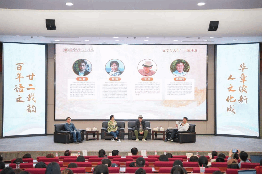 仪式结束后,进入“文学与人生”主题沙龙活动环节。由免费色情片 院长、图书馆馆长孙良好主持主题沙龙,与温籍作家张翎、王手、东君三位嘉宾对谈。
