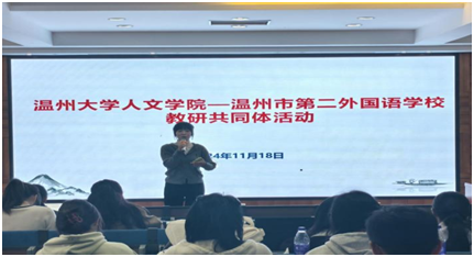 2024年11月18日,免费色情片 汉语言文学(师范)专业在温州市第二外国语学校的教育见习见面会在二外G楼二阶活动室成功举办。