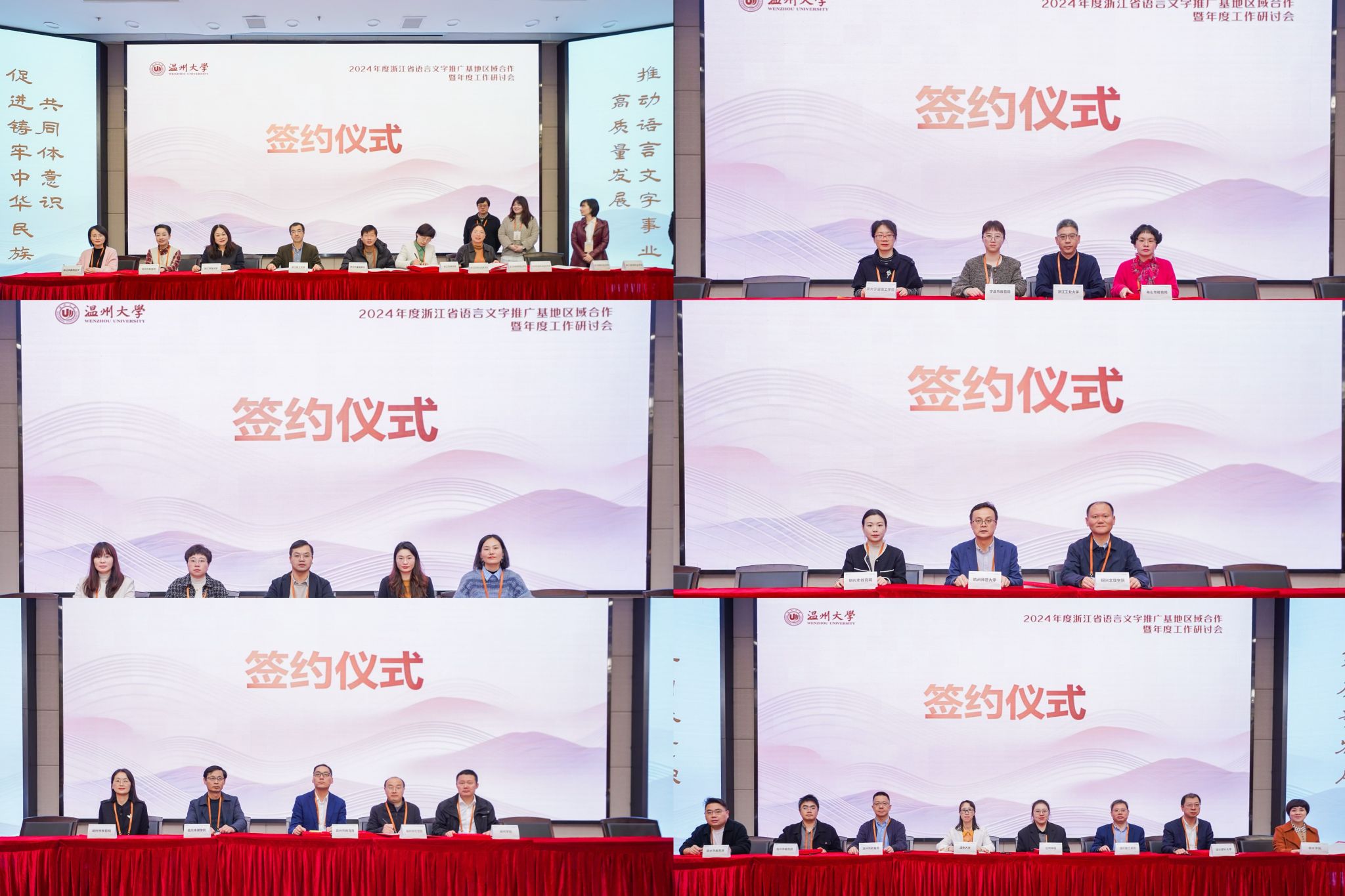 会上还举行了区域合作签约仪式,我省6家国推基地与各设区市教育局(语委办)、各高校省级基地签订协议,确立伙伴关系,在语言文字的品牌打造、传承推广、学科建设和社会实践等方面展开全方位的合作。