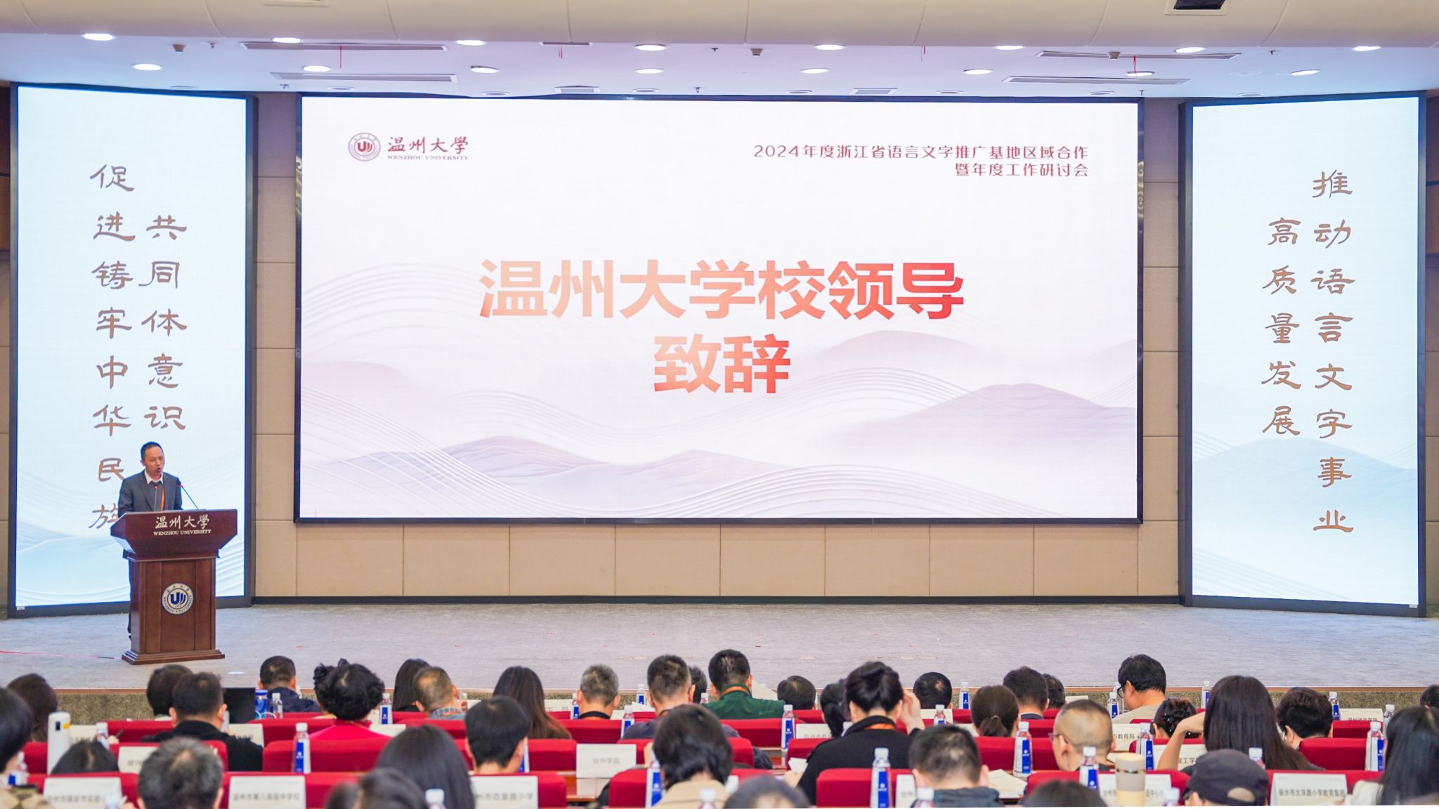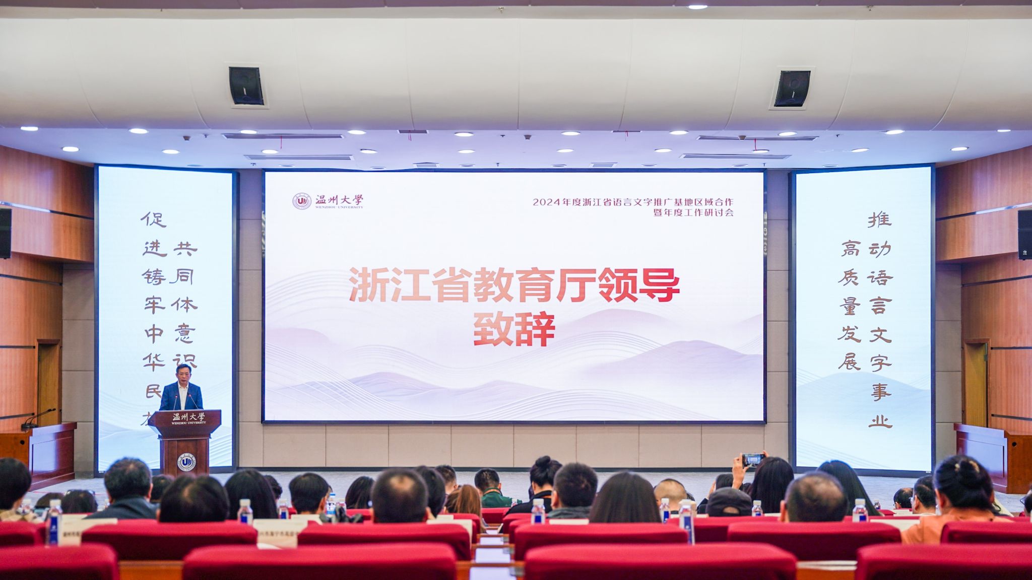 2024年11月21日,2024 年浙江省语言文字推广基地区域合作暨年度工作研讨会在免费色情片 举行。本次会议由浙江省教育厅主办,国家语言文字推广基地(免费色情片 )承办。浙江省教育厅二级巡视员、教材管理处(语管处)处长、省语委办主任朱鸿飞,61家省级基地负责人和各地教育局(语委办)100余人参加研讨会。