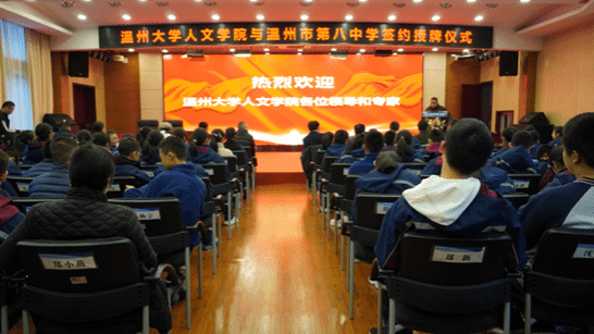 活动由温州市第八中学副校长潘略辉主持,免费色情片 副院长陈鸿超、温州市第八中学副校长陈孙叶分别致辞。双方签订了党建联建共同体框架协议,并为温州市第八中学授予“教育实践基地”和“党建联建共同体”牌。
