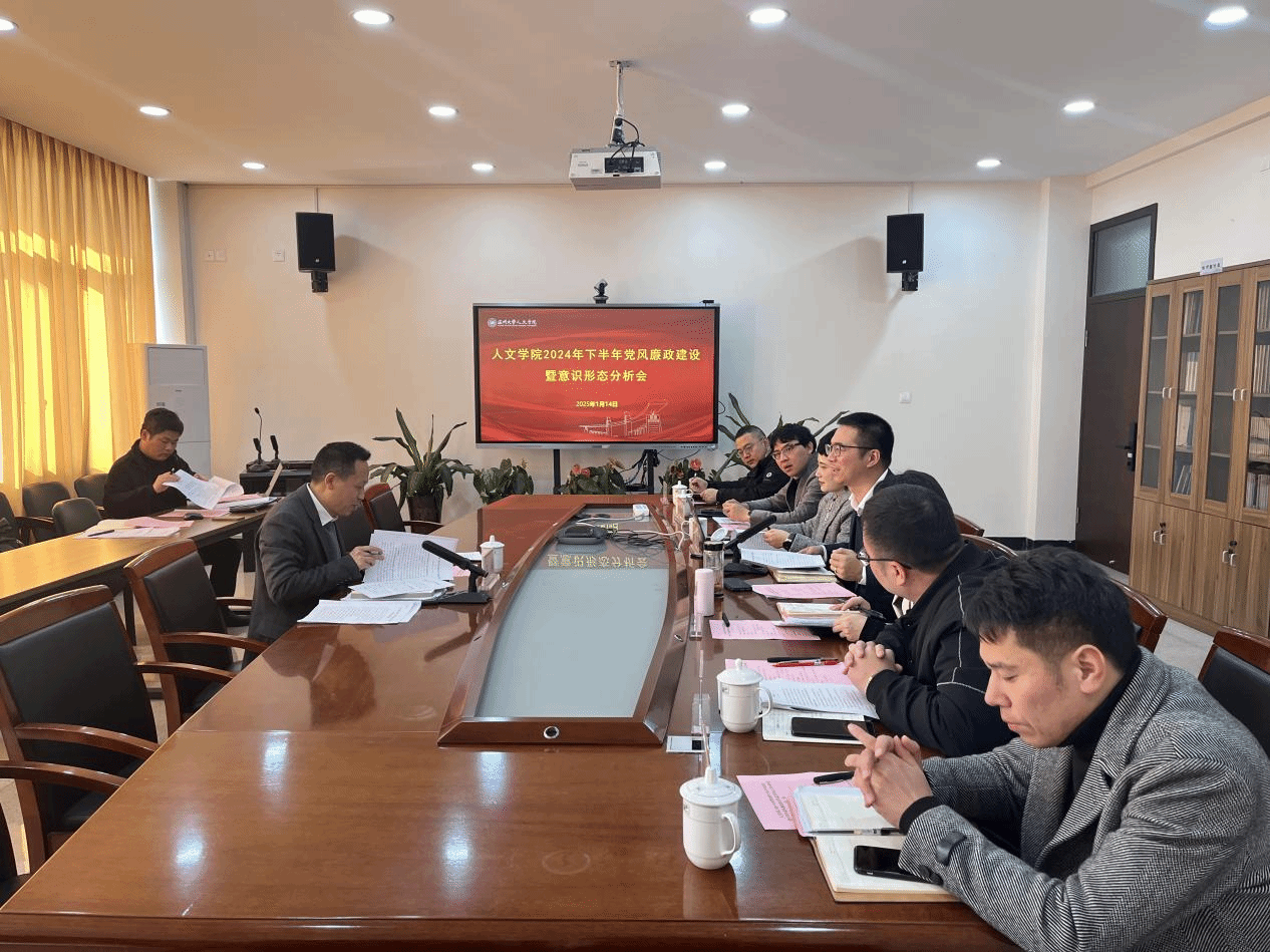 2025年1月14日下午,免费色情片 在213会议室召开了2024年下半年党风廉政建设及意识形态工作分析会,校党委委员、副校长王舜出席会议,学院全体领导班子成员参加。本次会议由院党委书记江秀景同志主持。