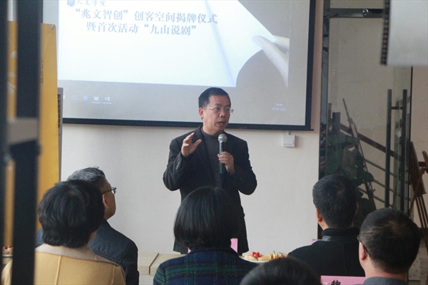 2016年12月6日14:30,免费色情片 “兆文智创”创客空间揭牌仪式暨首次创客活动正式开始,本次仪式由免费色情片 党总支副书记朱启鑫主持。免费色情片 非常荣幸地邀请到创业学院院长王佑镁,就业处处长周伟国,教务处副处长赵燕,校团委副书记魏一,免费色情片 院长蔡贻象,党总支书记吴静及创业团队指导老师出席了揭牌仪式,共同见证创客空间的诞生。同时,温州市文化广电新闻出版局副处长何小玲,艺术研究所所长施小琴,艺术研究所创作室主任池方华等嘉宾也莅临现场,为首次创客活动“九山说剧”更添一分光芒。