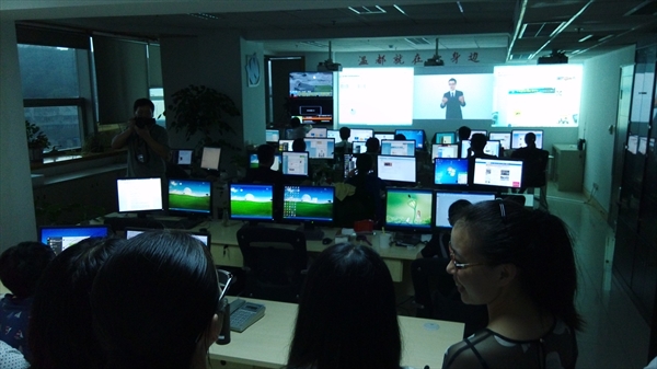 缪磊副总编简要介绍了温州都市报2013年以来来融合转型的主要经验,并带领广告学子参观了全媒体中央控制室。有序排列的电脑方阵里,不时传出清脆忙碌的键盘敲击声,二十余位值班编辑在这个舞台全情挥洒。经由首席信息集成官的调度审核,温都每一天的精致内容就从这里传递到30余万受众的移动终端。而每一条优质的新闻内容都对应着一个现场记者或是记者团队。高效成熟的运作方式展现出温都近年来融合转型的主要成果。