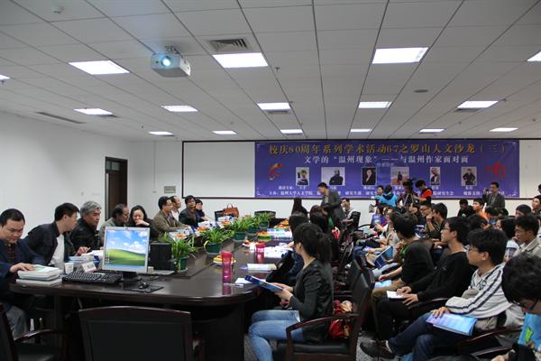 副院长孙良好教授主持,出席的嘉宾有国家一级作家、浙江省作协副主席、温州市文联主席与作协主席王手,“原散文”代表作家、浙江省散文创委会副主任、温州市作协副主席马叙,“中生代”代表诗人、首届《十月》诗歌奖获得者池凌云,在音乐与文学中自由穿梭并教授英语的作家郑亚洪,首届《人民文学》新人奖获得者、温州市作协副主席哲贵,第二届郁达夫短篇小说奖获得者、温州市作协副主席东君,免费色情片