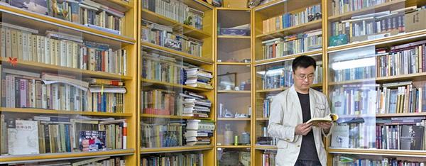 书房紧挨着窗户的茶几上摆满了书籍,两杯刚泡好的绿茶被搁在书堆中。“今天没雨可惜了,我喜欢独自坐在书房里看书,雨是读书时的佐料,有它相伴,读书的意境更佳。”孙良好说。